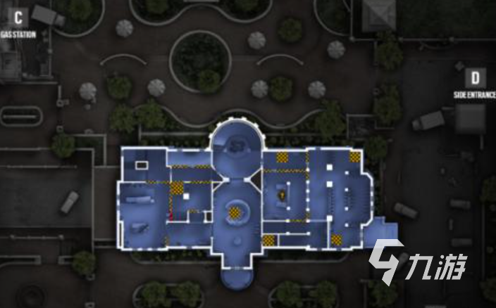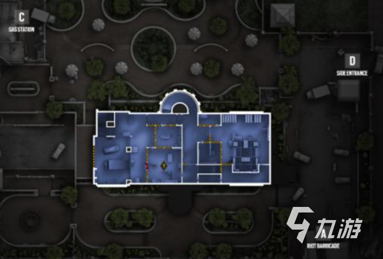 領事館地下是一張比較開闊的地圖,擁有9處可以完全破壞的黃色區(qū)域,在這張地圖里面防守方一定要將出口進行合理的封鎖和開墻,否則很容易暴露視野被進攻方的擊敗,如果隊內(nèi)有鐵錘或ASH等職業(yè),最好是采用陷阱戰(zhàn)術。