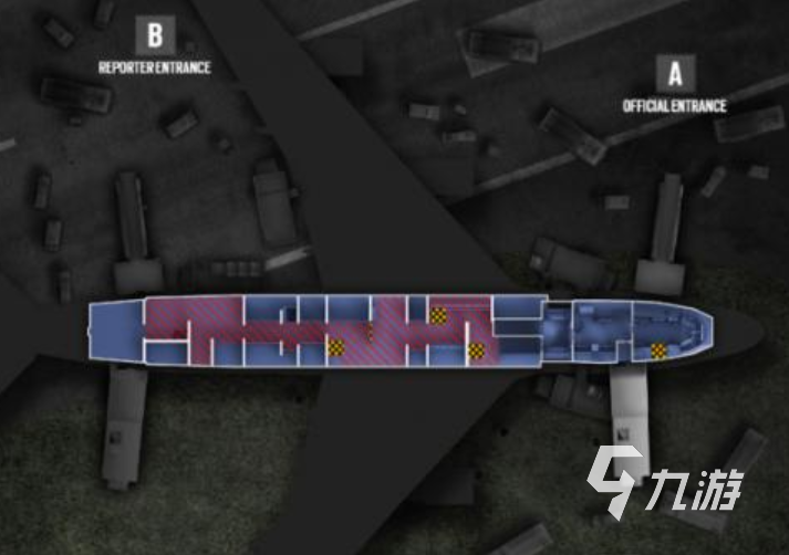 其次,在地圖中標注的紅色區(qū)域是并不能完全被破壞的區(qū)域,但是玩家通過炸彈破壞后是能夠看到敵人的視野的,造成的裂痕無法通行,比如地板下的鋼筋一類,在炸開之后仍會阻擋人物前進,就比如地圖飛機之中的地下一層和二層等地區(qū),擁有大量的地板結(jié)構(gòu)和玻璃結(jié)構(gòu)。