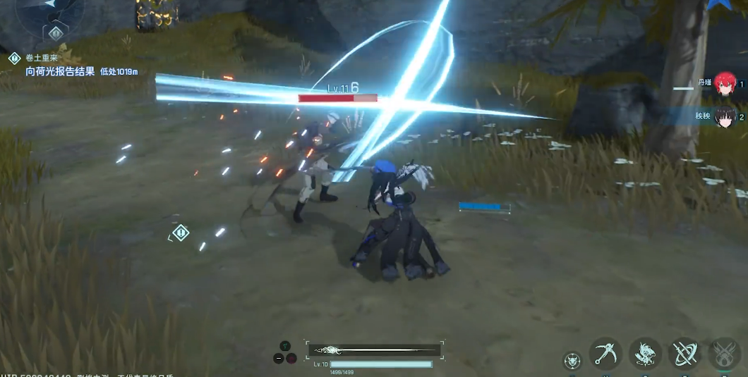 普攻進(jìn)行最多4段的連續(xù)劍擊。若第4段命中目標(biāo),可獲得1層「鋒鳴」。重?fù)粜盍,消耗一定體力,任意攻擊后都可以接重?fù)?。向前突刺造成風(fēng)鳴傷害,且聽(tīng)風(fēng)吟;重?fù)艉笠欢螘r(shí)間內(nèi)使用普攻,秧秧會(huì)消耗1層「鋒鳴」,回旋起舞,揮出一道風(fēng)刃,造成風(fēng)鳴傷害。并且恢復(fù)35點(diǎn)風(fēng)鳴能量。
