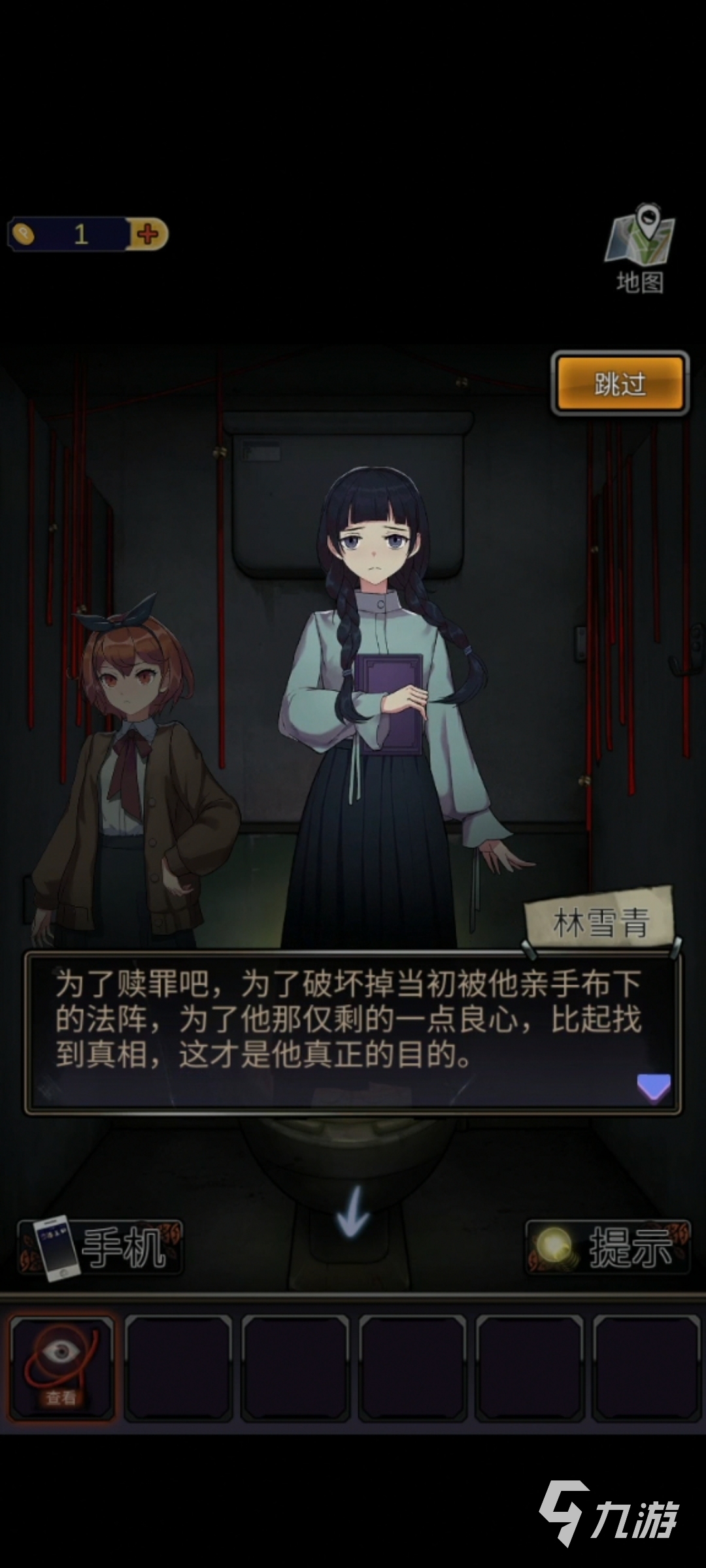 在第一章的結(jié)局中,如果情感值大于理智值,我們會直接選擇破壞法陣,讓這個充滿惡意的詛咒消失。在這個結(jié)局中,我們是無法得知墜樓事件的真正兇手的,我們只能對【陳思源】抱有善意的祝愿。