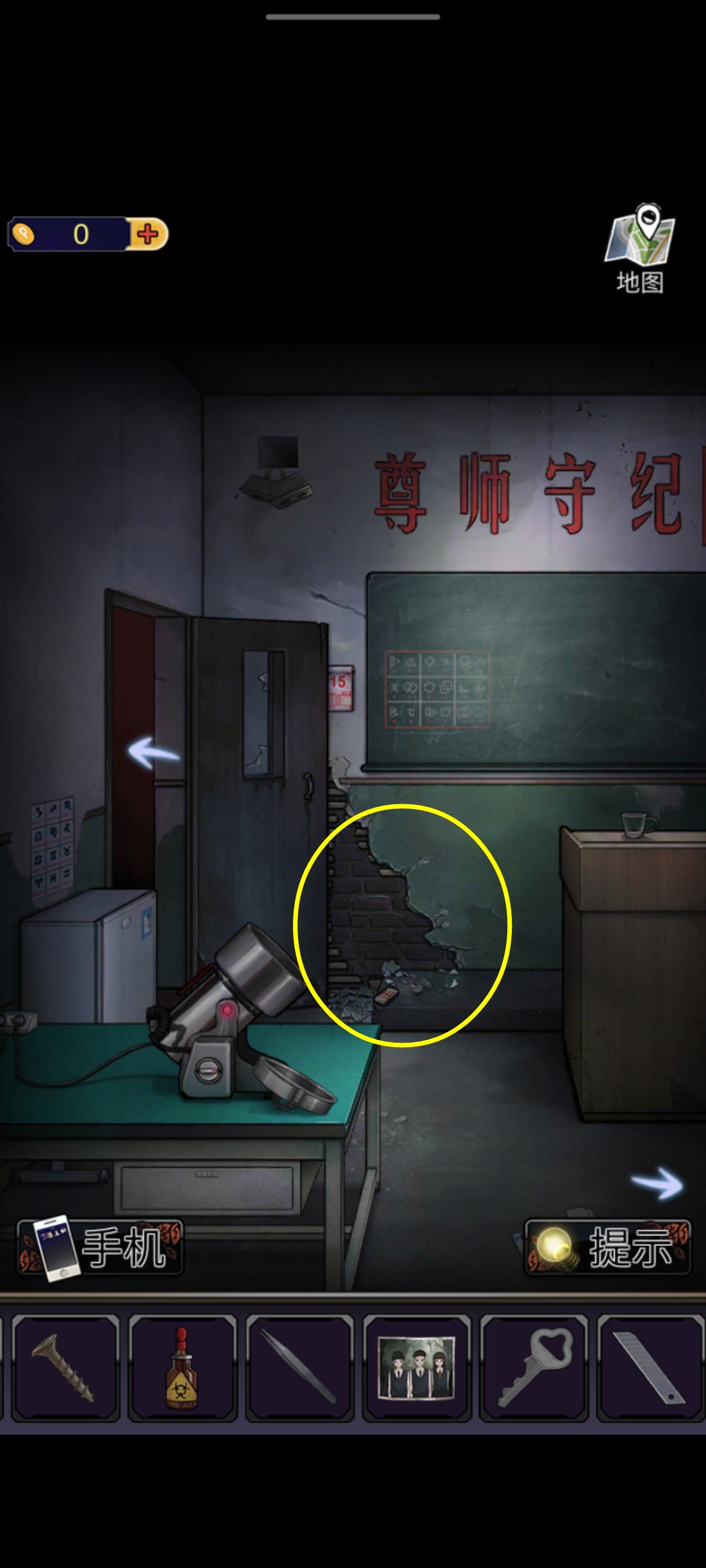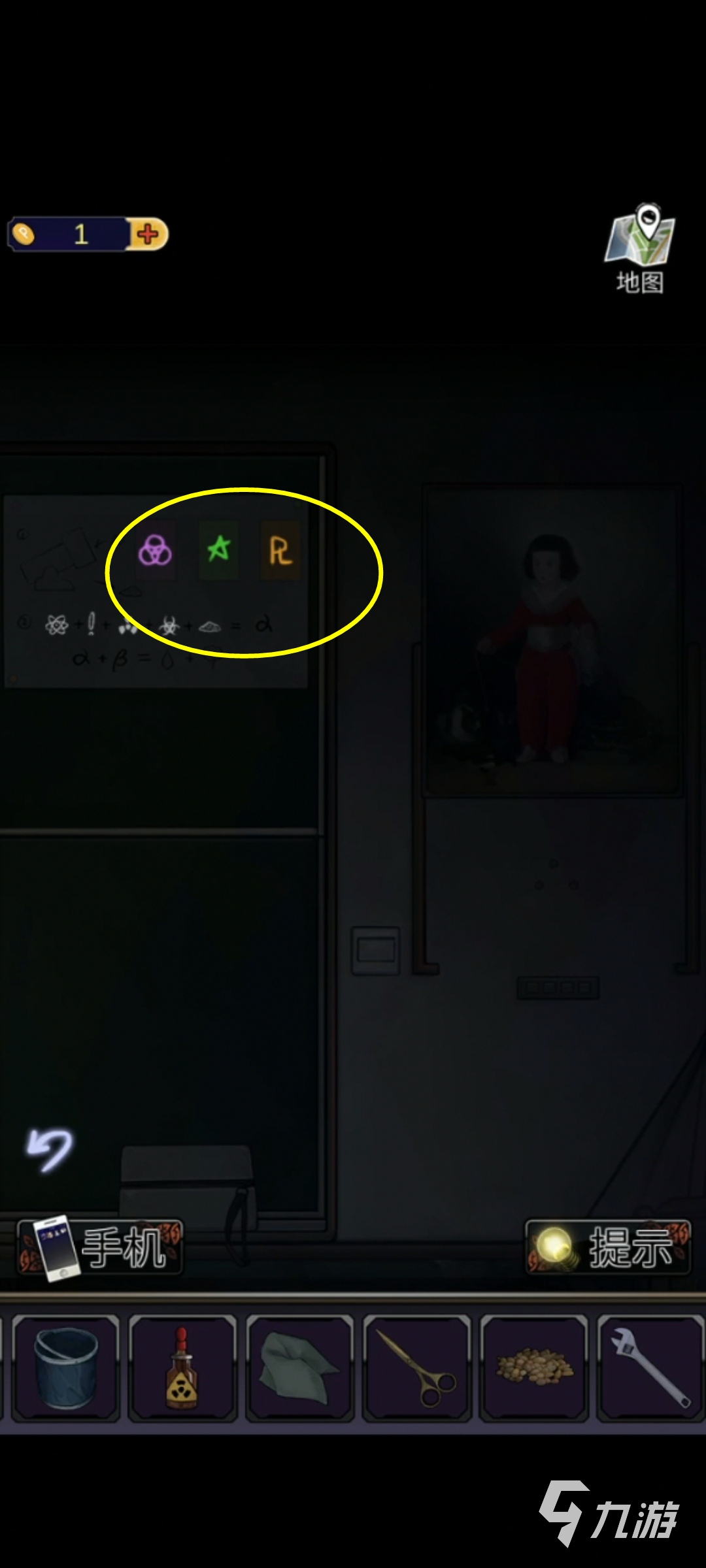 1、進(jìn)入理化教室,點(diǎn)擊黃色圈圈出的地方,獲得【密碼盒子】。偷偷劇透一下,我們需要的【唇油】就在這個(gè)【密碼盒子】當(dāng)中哦。