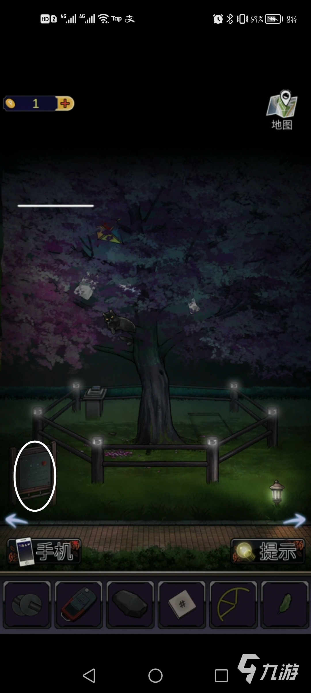 18、將【塑料棒】和【狗尾草】組合起來(lái),形成【逗貓棒】。然后使用逗貓棒將櫻花樹(shù)上的貓趕下來(lái),撿起掉落的【鑰匙】。
