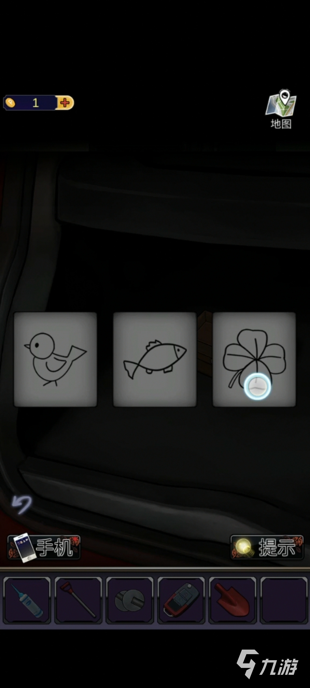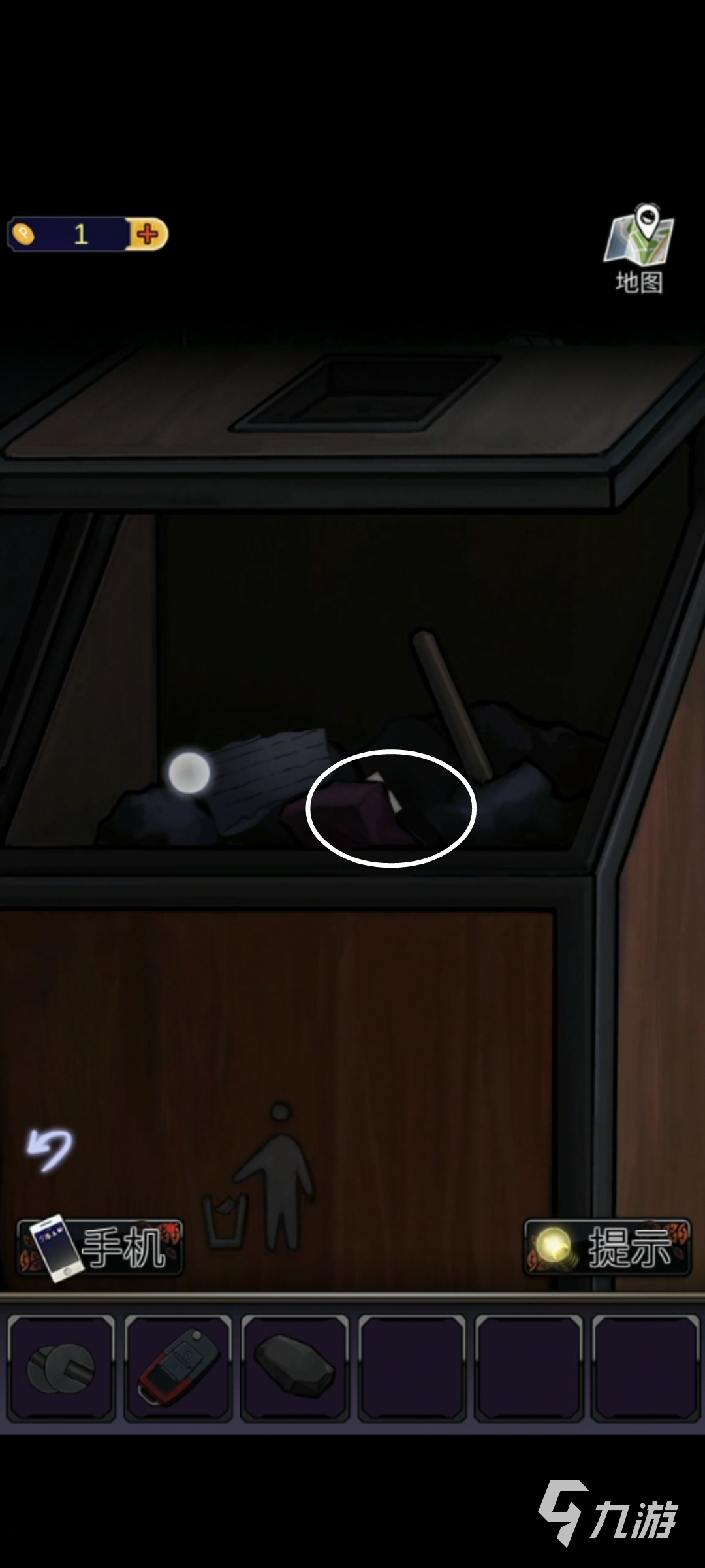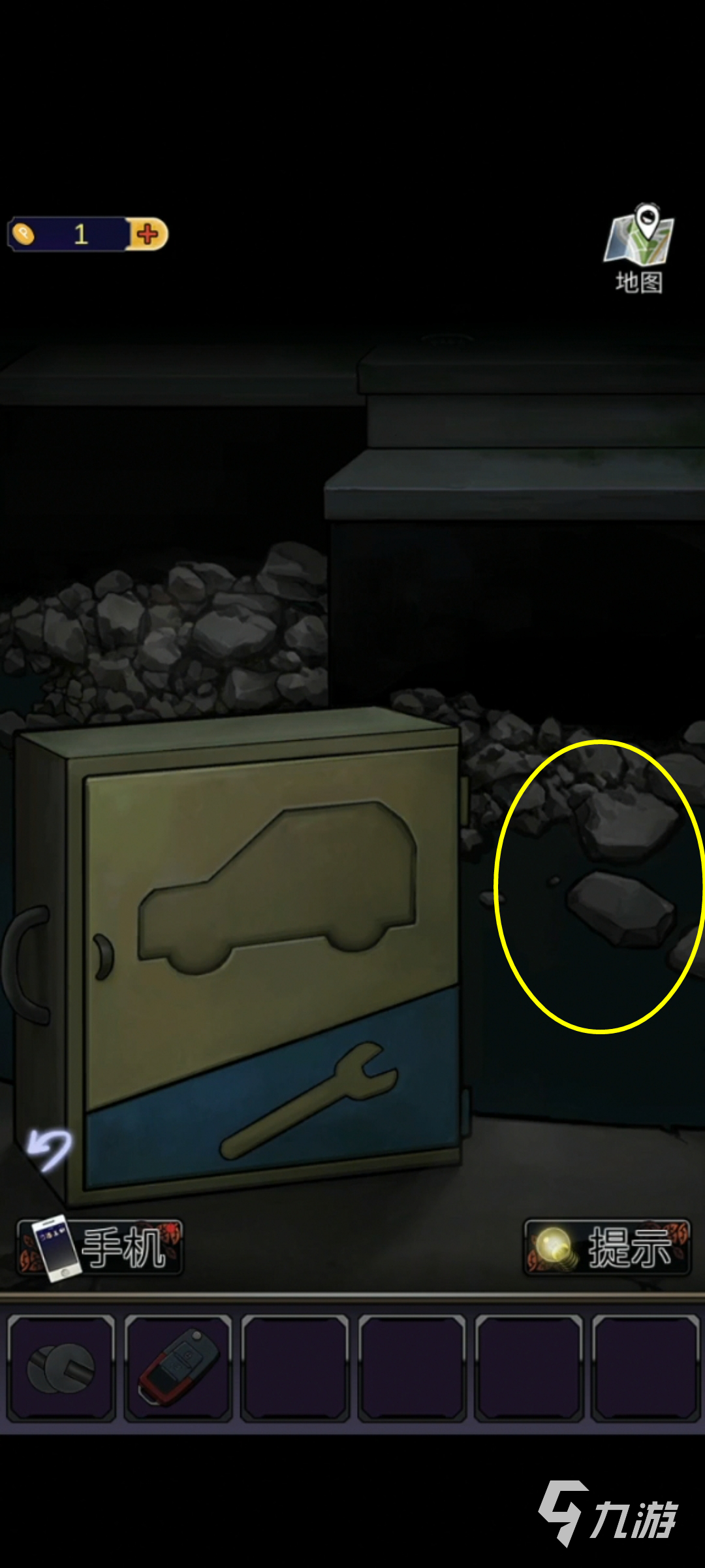 7、然后點(diǎn)擊物品欄中的車(chē)鑰匙,點(diǎn)擊白圈圈住的地方打開(kāi)后備箱,獲得道具【鏟子頭部】。