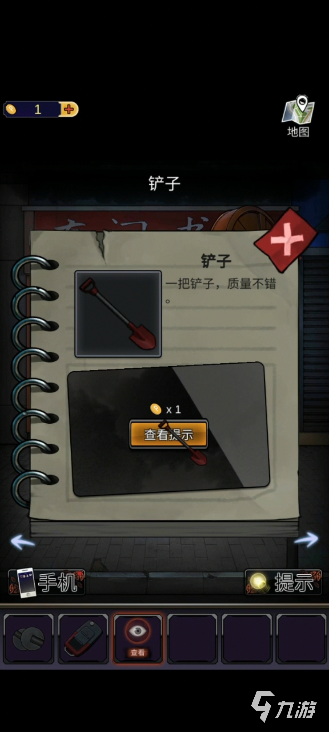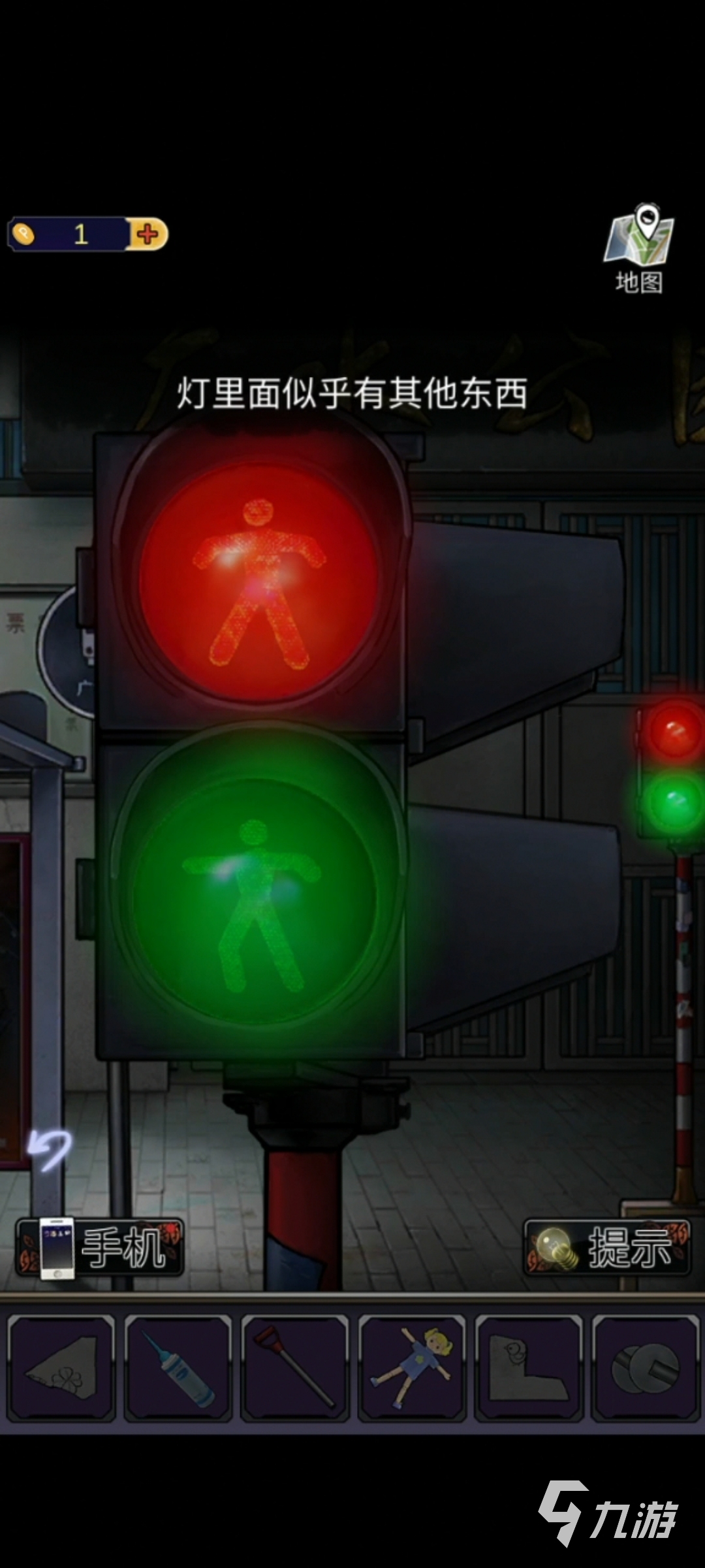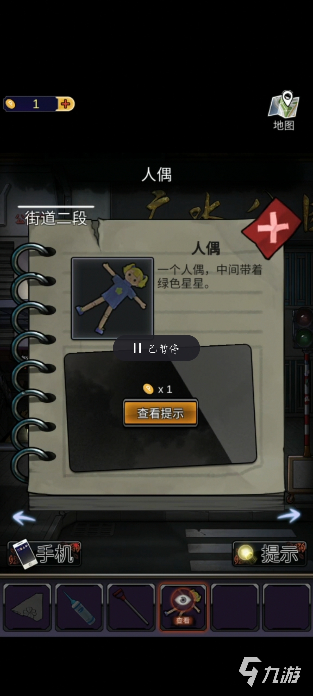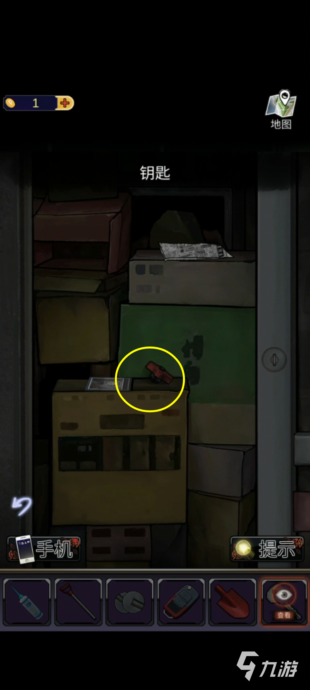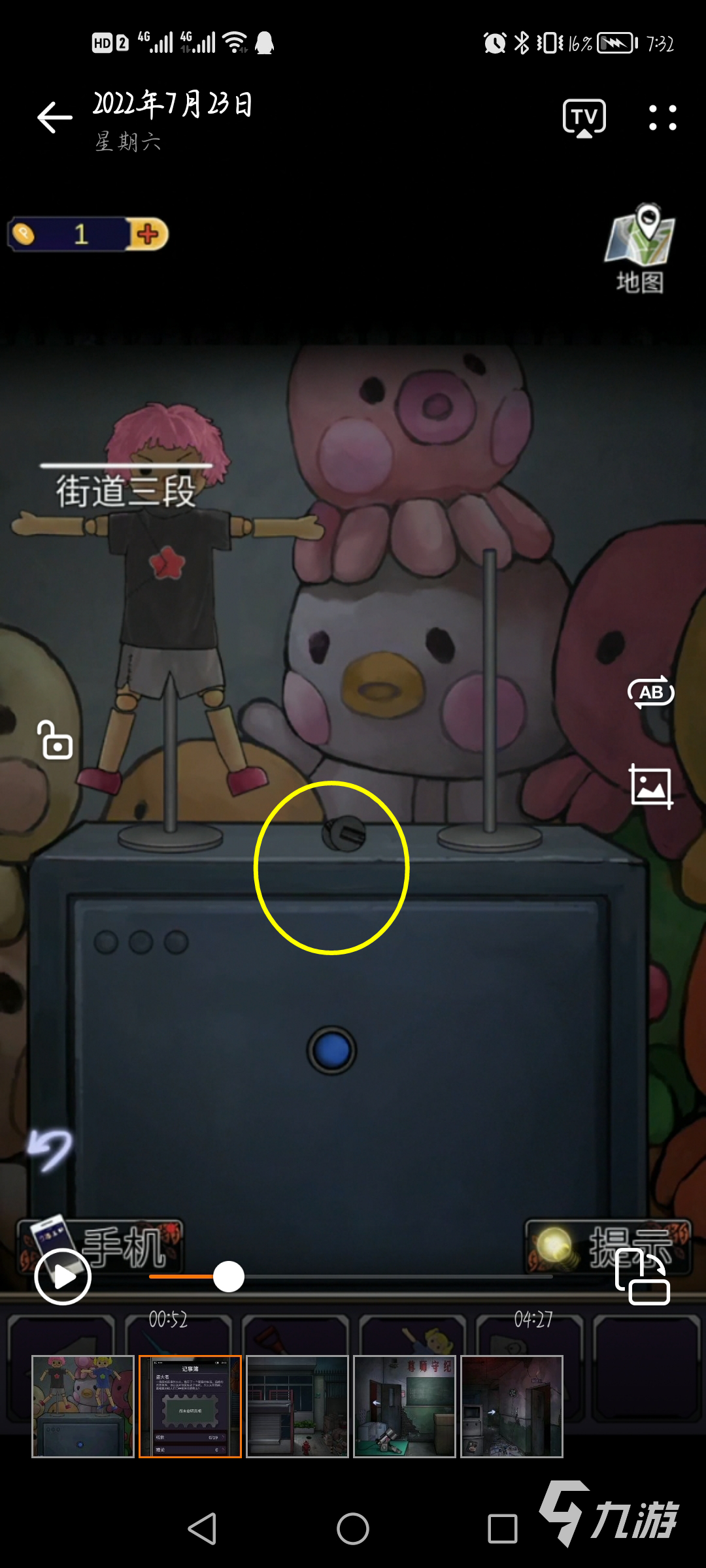 10、回到報(bào)刊亭的街道四段,點(diǎn)擊黃色圈圈住的位置,用鑰匙打開(kāi)玻璃門(mén),得到【閥門(mén)】。