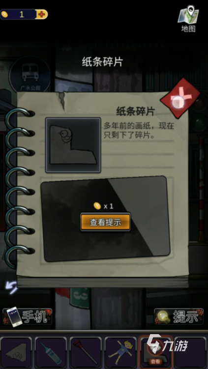 8、前往廣水公園門(mén)口,點(diǎn)擊黃色圈圈住的位置,將獲得的【紙條碎片】拼合起來(lái),獲得得到關(guān)一串圖片。