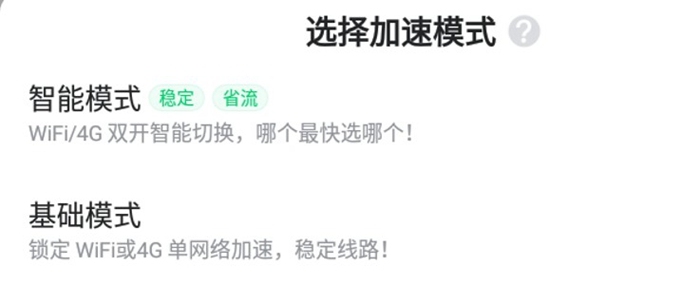目前biubiu支持兩種加速模式,如果大家僅僅使用了wifi或者是移動(dòng)數(shù)據(jù),那么就會(huì)自動(dòng)使用基礎(chǔ)模式。如果大家同時(shí)開啟了兩種網(wǎng)絡(luò),使用智能模式會(huì)更穩(wěn)定一些,但是也會(huì)消耗一點(diǎn)流量,大家需要注意哦。