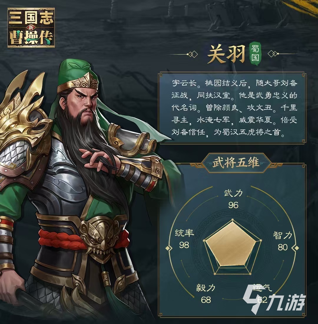 來源: 極光 作者: 番茄 2025年06月18日 17:02對每一個喜歡三國游戲的玩家來說,關羽都是一個必須要去了解的武將,因為在任何游戲中它都是極為強勢的存在,出現(xiàn)在新三國志曹操傳中也是如此,今天小編就來詳細介紹一下新三國志曹操傳關羽技能怎么用。關羽是游戲中的玄甲重騎兵種,率領全副武裝的騎兵,可以有效抵擋箭矢傷害,能快速沖入敵方陣中進行戰(zhàn)斗。