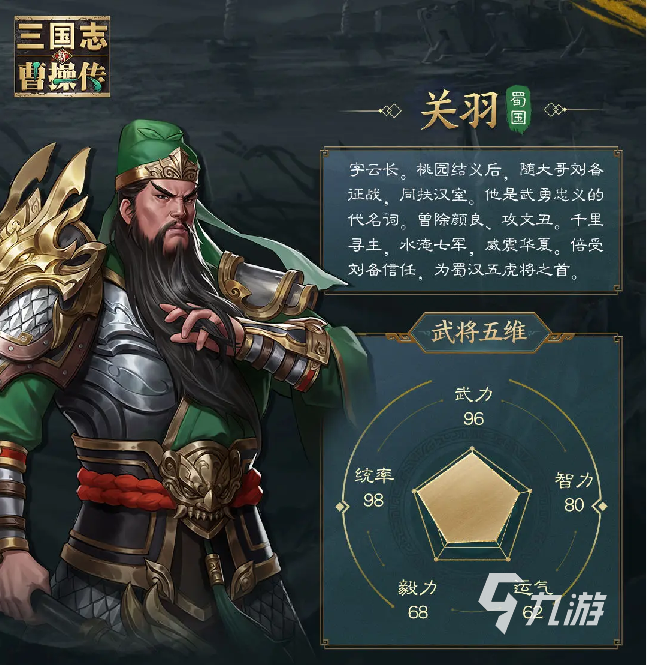 來源: 極光 作者: 油貓餅 2025年07月03日 14:26新三國志曹操傳關羽怎么玩?在三國題材的游戲當中,關羽一直都是人氣非常高的存在,該作品里也不例外,他不僅擁有超凡的武力,同時也擁有堅定不移的忠心,在該游戲里關羽也是個五維屬性相當全面的武將,很多朋友都好奇他該怎么玩,接下來就詳細介紹下他的技能玩法情況。