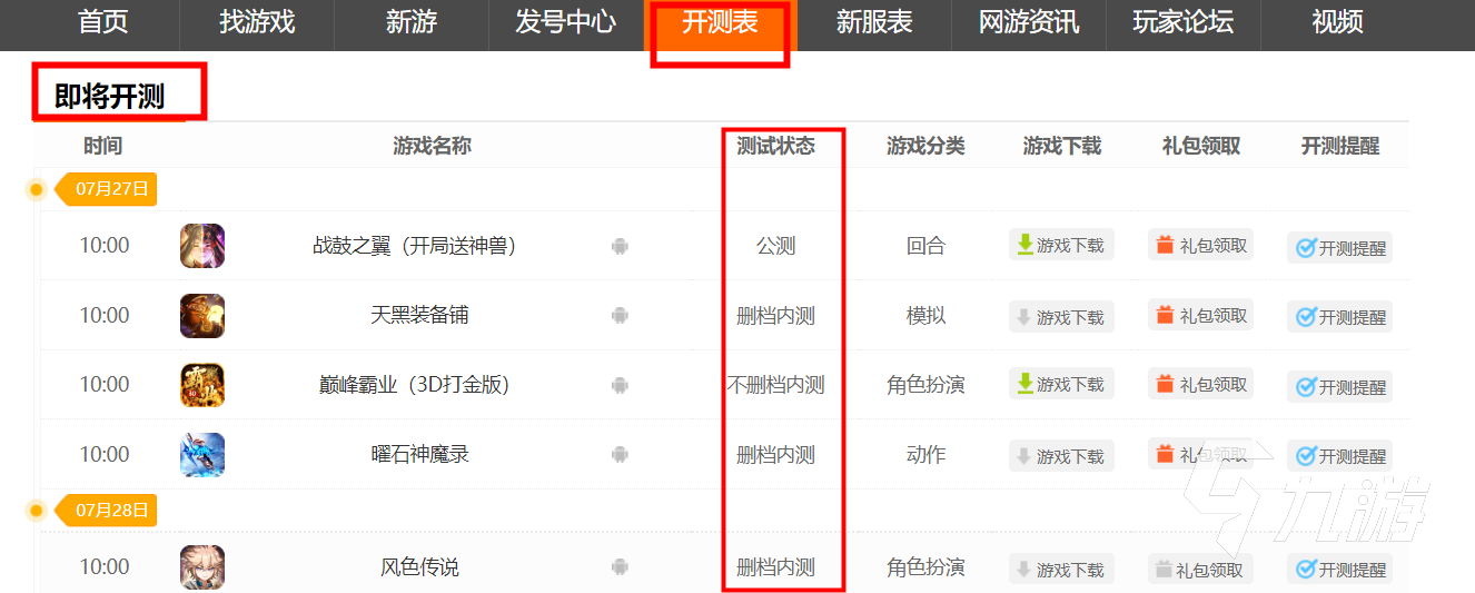那么關(guān)于這款游戲的下載途徑,小編推薦【九游】平臺(tái)。這是一個(gè)服務(wù)于游戲玩家的樂園,里面擁有海量的游戲,更有新服榜,可以快速了解待測(cè)游戲的最新動(dòng)態(tài)。如圖,不僅能看到上線測(cè)試時(shí)間,還能知道具體測(cè)試信息以后后方的禮包領(lǐng)取、下載預(yù)約等。大家可以在九游里找到這款游戲進(jìn)行預(yù)約,就能快人一步下載游戲體驗(yàn)到刺激的游戲內(nèi)容了。