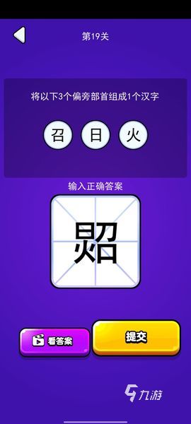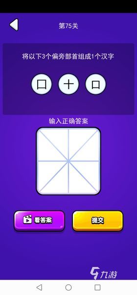 這款游戲是以漢字作為靈感設(shè)計(jì)的游戲,這個(gè)游戲的玩法其實(shí)也是非常簡(jiǎn)單的,小伙伴們需要在系統(tǒng)給出的固定字或者是偏旁部首,去組成一個(gè)字??此品浅:?jiǎn)單的游戲機(jī)制,但是玩法上面還是很看大家的文化水準(zhǔn)的,畢竟有時(shí)候也多樣化的組合。