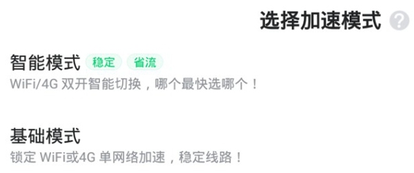 Biubiu加速器還有一個(gè)與眾不同的地方就是提供了兩種不同的加速模式可以選擇,如果大家流量比較多的話,非常推薦在游玩的過(guò)程中同時(shí)開(kāi)啟WiFi和4G網(wǎng)絡(luò)選擇智能模式,可以為我們帶來(lái)更加穩(wěn)定的游戲體驗(yàn)。