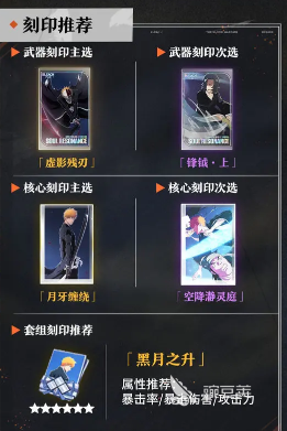想要讓黑崎一護(hù)的輸出得到提升,刻印方面就需要花一些小心思,武器刻印可以選擇月牙纏繞,然后挑選空降瀞靈庭,為何要注重于這兩個,主要是可以快速地強(qiáng)化核心技能傷害。核心刻印優(yōu)先選擇虛影殘刃。可以進(jìn)一步的提升戰(zhàn)技的傷害上限,如果是套組刻印,可以直接鎖定黑月上升。在陣容搭配方面,基礎(chǔ)的陣容其實就是圍繞輔助可以選擇能迅速提升暴擊率的輔助角色,才能擁有較好的優(yōu)勢。