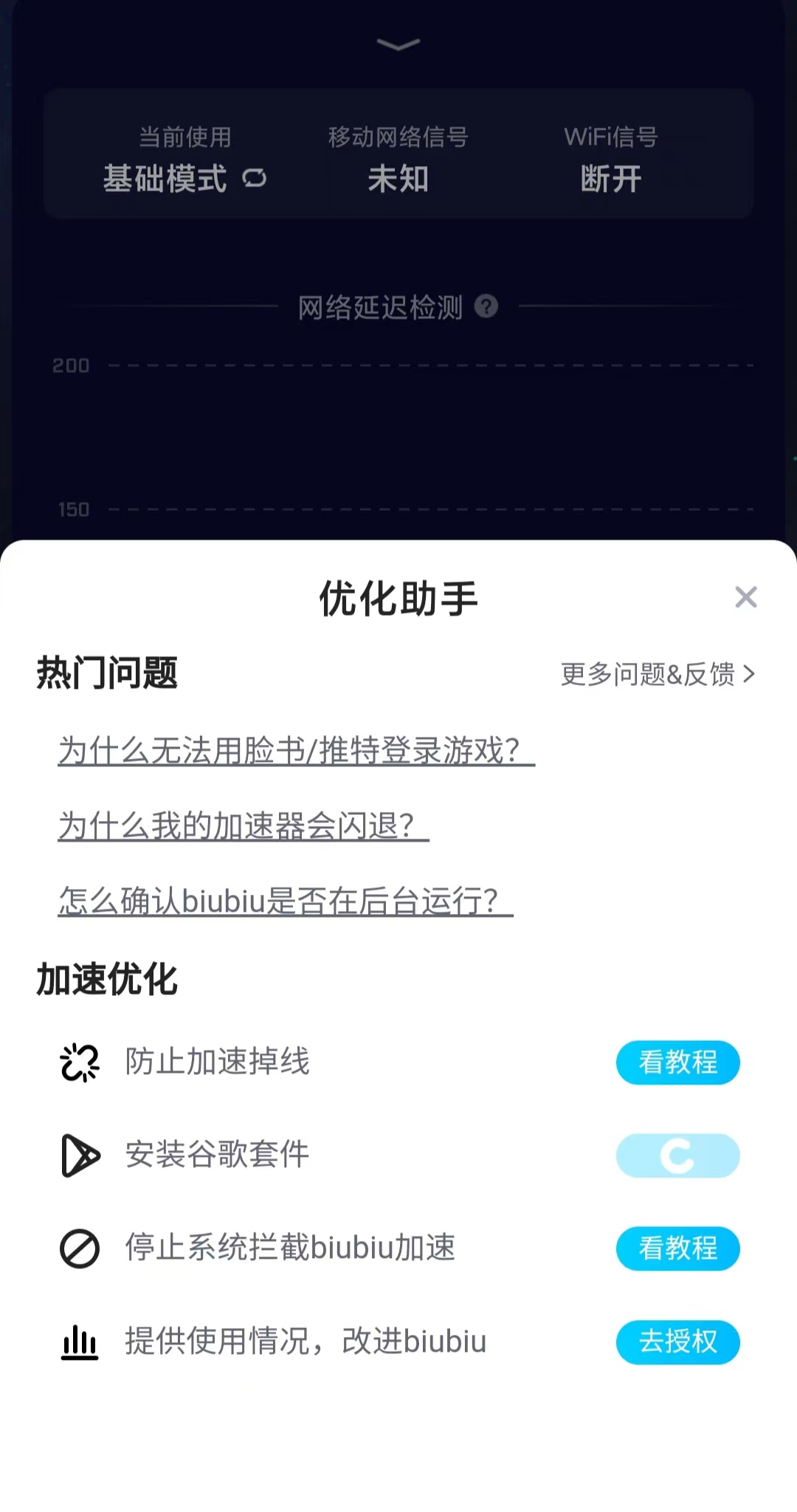 進(jìn)入加速界面,玩家可點(diǎn)擊上方的耳機(jī)形按鈕看到詳細(xì)的教程攻略,玩家可自行查看各類問題的解決方法。不需要幫助的玩家直接點(diǎn)擊進(jìn)入游戲的按鈕即可。