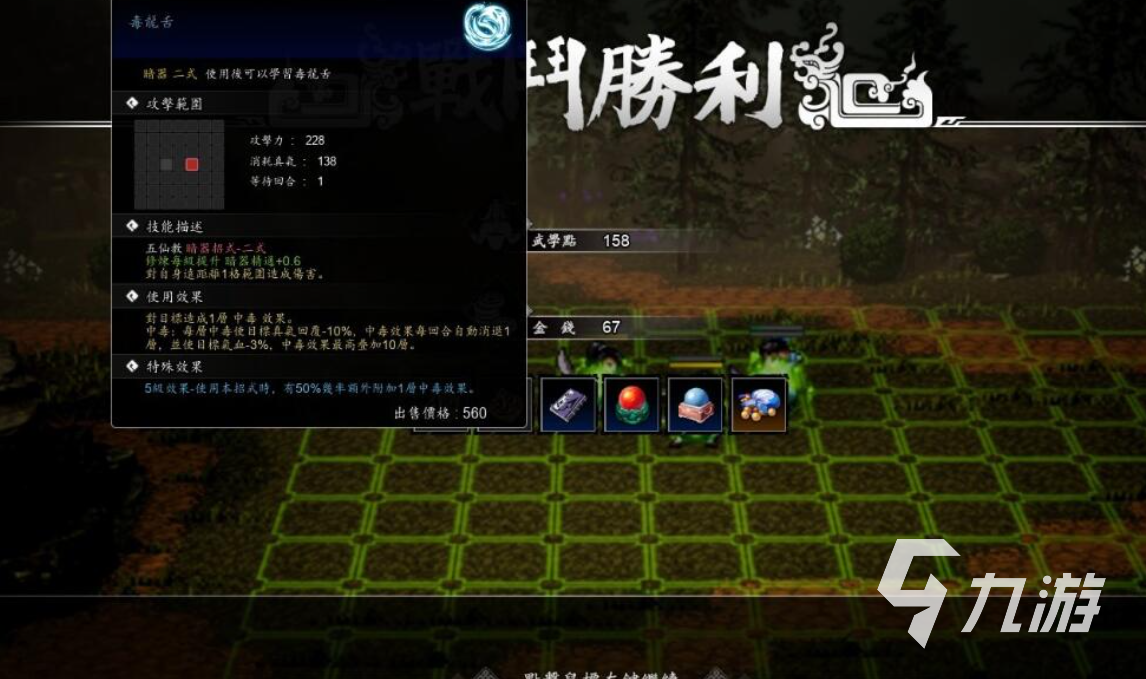 莫問入隊(duì)以后,前往碧幽林找到山賊,擊敗山賊后,向左邊走一會遇到降蠱式,戰(zhàn)斗勝利能夠獲得毒龍舌武器秘籍。