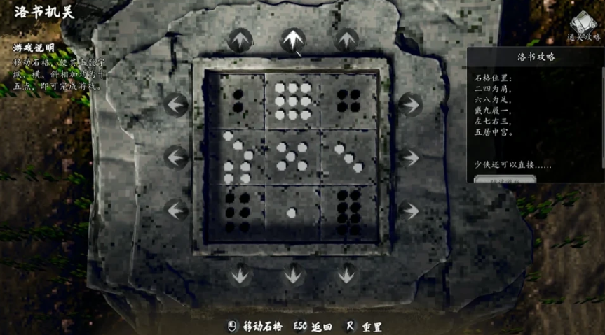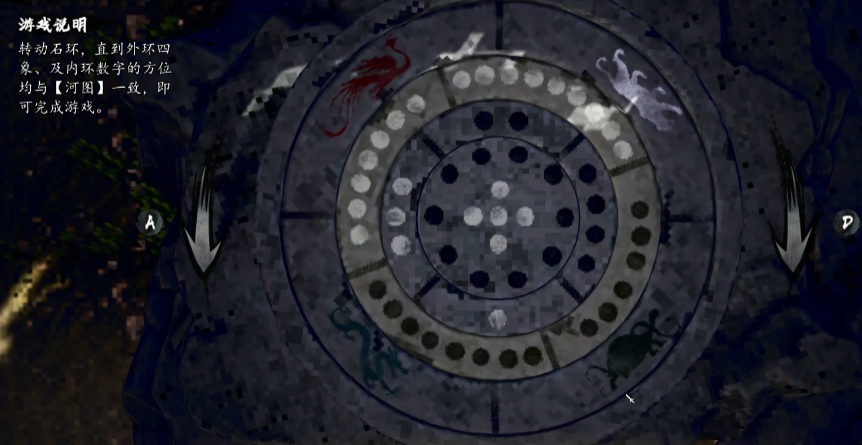 以上就是關(guān)于逸劍風(fēng)云決河圖機(jī)關(guān)怎么過的大致介紹,得先了解石環(huán)轉(zhuǎn)動(dòng)的規(guī)律,然后才能正確解開這個(gè)機(jī)關(guān)。河圖機(jī)關(guān)之后還有一個(gè)洛書機(jī)關(guān),九宮格,相對(duì)簡(jiǎn)單,先確定好四個(gè)角,左上右上是2和4,左下右下是6和8,然后調(diào)整十字的位置即可。