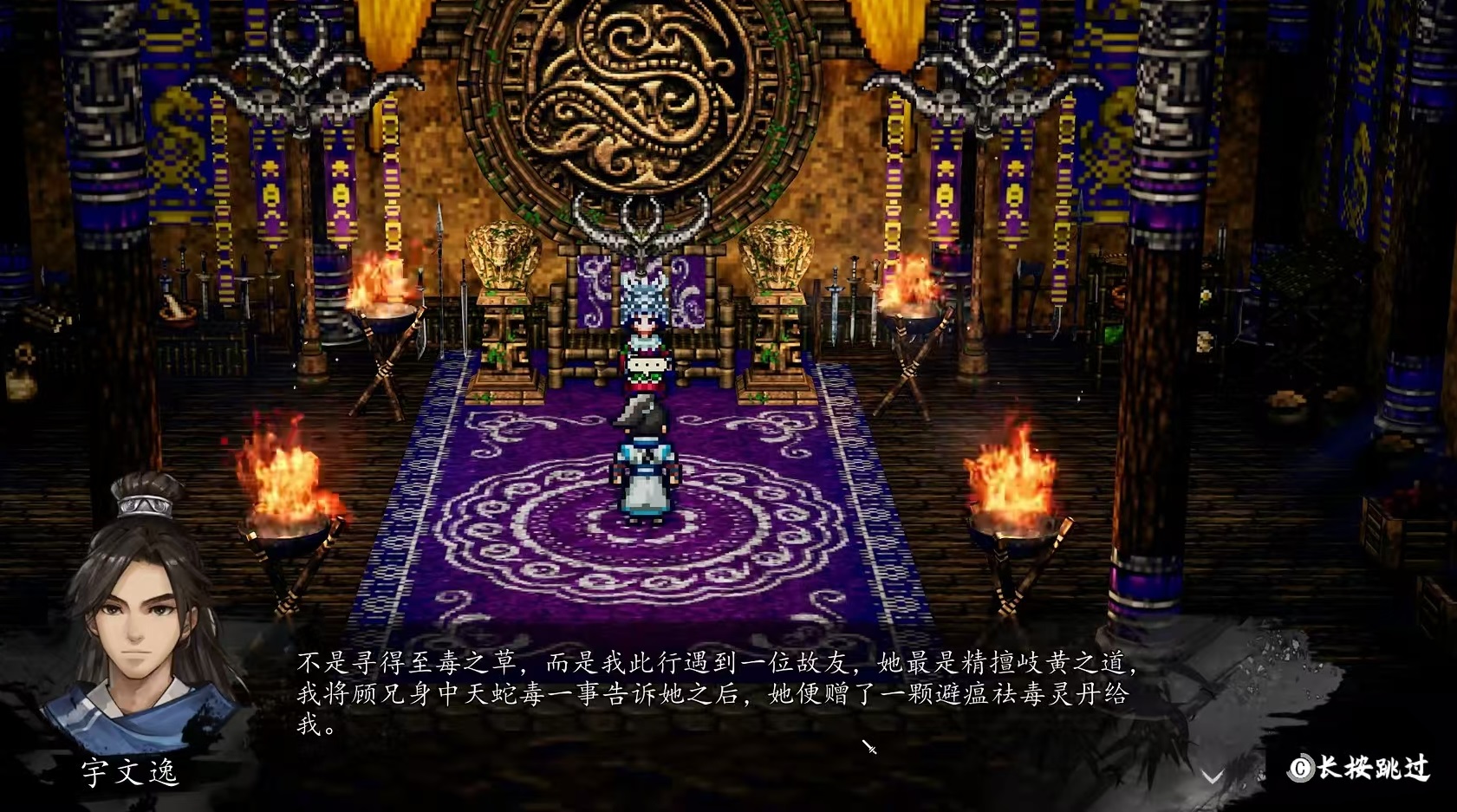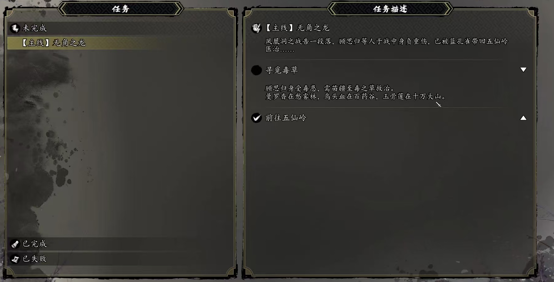 如果想要將這個(gè)人物救活,那么需要做以下操作。在劇情推進(jìn)到鳳凰洞的時(shí)候,一定要選擇讓他留下來(lái)斷后。之后就會(huì)觸發(fā)藍(lán)孔雀將他帶回五仙嶺救治的任務(wù),需要玩家去尋找三種藥材。第一種藥材是去愁霧林找到曼羅香,第二種是去百藥谷找到烏頭血,第三種是十萬(wàn)大山找到玉骨蓮。找到這三種藥材之后再回到五仙嶺去找藍(lán)孔雀,將顧思?xì)w救活。通過(guò)一段時(shí)間的對(duì)話之后完成劇情,顧思?xì)w就會(huì)恢復(fù)健康能繼續(xù)加入進(jìn)主角隊(duì)伍一同行動(dòng)了。