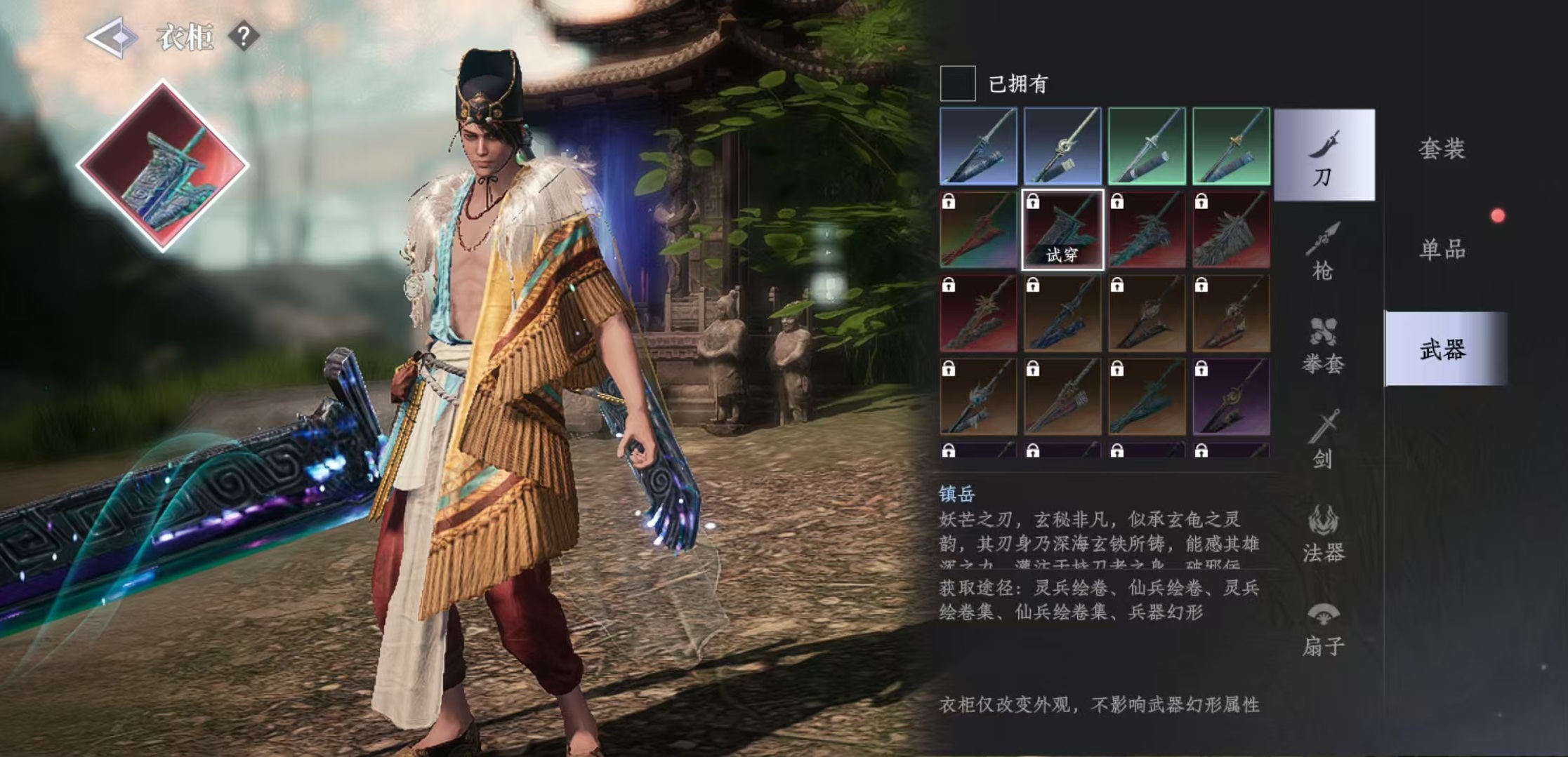 第3個途徑是直接去衣柜中花費寶鈔購買,這一類型是大家最容易獲取到的,明碼標價只需要消耗對應的寶鈔就可以直接購買過來。如果大家想要快速擁有一套外觀,這是最直接的途徑。最后小編再給大家介紹一下武器,因為游戲中有著武器幻型和武器外觀這兩類,今天所說的外觀,指的是單純改變武器的形狀,不會影響武器的幻形屬性,所以這兩類大家一定要區(qū)分清楚。