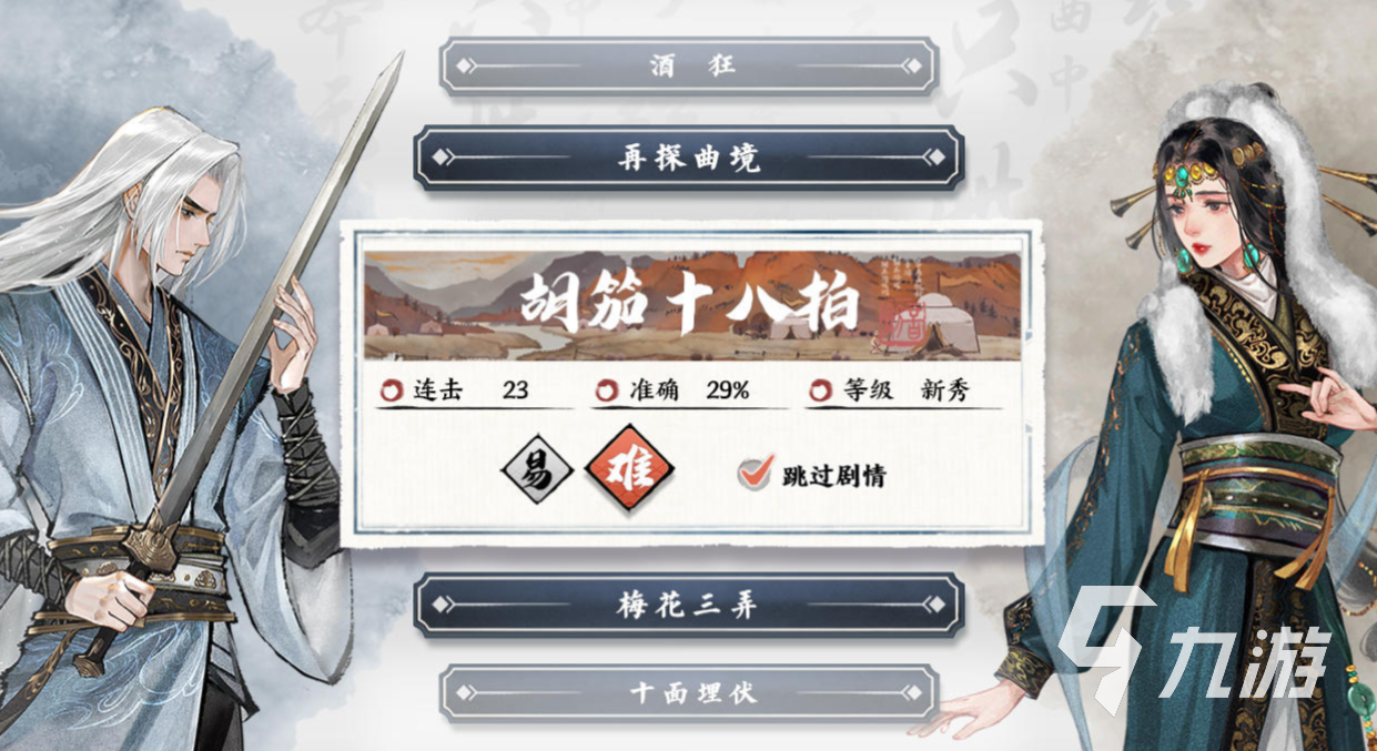 曲中劍是款玩法十分另類的硬核水墨風(fēng)格音樂游戲,將古典音樂和武俠主題結(jié)合的玩法顛覆了大家的認(rèn)知,張弛有度的背景和頗具節(jié)奏感的音效給人耳目一新的感覺,古色古香的時(shí)裝和如夢(mèng)似幻的背景表現(xiàn)讓游戲更具辨識(shí)度,跟隨音樂節(jié)拍操控角色進(jìn)行戰(zhàn)斗的方式絕無僅有,武器撞擊聲和悅耳動(dòng)聽的音效也相輔相成,特色鮮明的闖關(guān)過程顛覆了玩家的認(rèn)知。