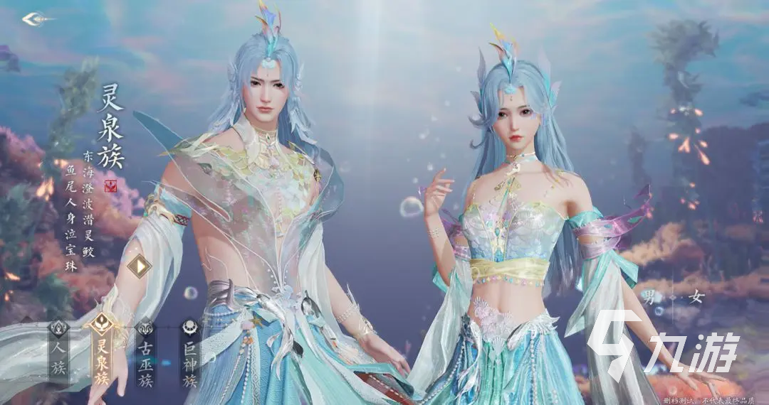 靈泉族生活在東海之濱,在碧波蕩漾水天一色的金色中生活,她們擅長音律,紡織鮫綃,擁有龍族的血脈和力量,同時這個種族的壽數(shù)非常的綿長。同時該種族的捏臉,也是非常的貴氣,能選擇的服飾鱗飾都非常的華麗,自定義的鰭飾、鱗片也都和彩繪一般精致,搭配后流光溢彩。