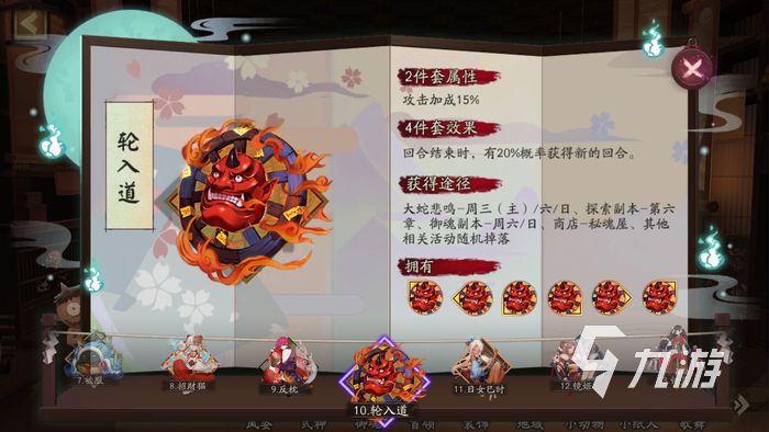 這一套則是比較適合搭配不知火的體系,觸發(fā)輪入道之后可以普攻4次,此時的傷害將會大幅度提升,而且也可以增加我們的被動層數(shù)。而且輪入道的搭配也是非常簡單的,畢竟攻擊加成的24位置很容易就可以入手,當然爆傷還是越高越好。