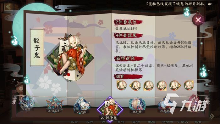 考慮到紅葉的被動技能可以提升50%的間接傷害,此時搭配2件套的土蜘蛛就是最為合適的了,畢竟最多可以累計30%的間接傷害,搭配加成就是45%了,讓整體的輸出強度得到提升。而4件套的話則是使用狂骨,畢竟可以讓自己獲得最高的增傷效果,最多8火提升64%的輸出傷害。