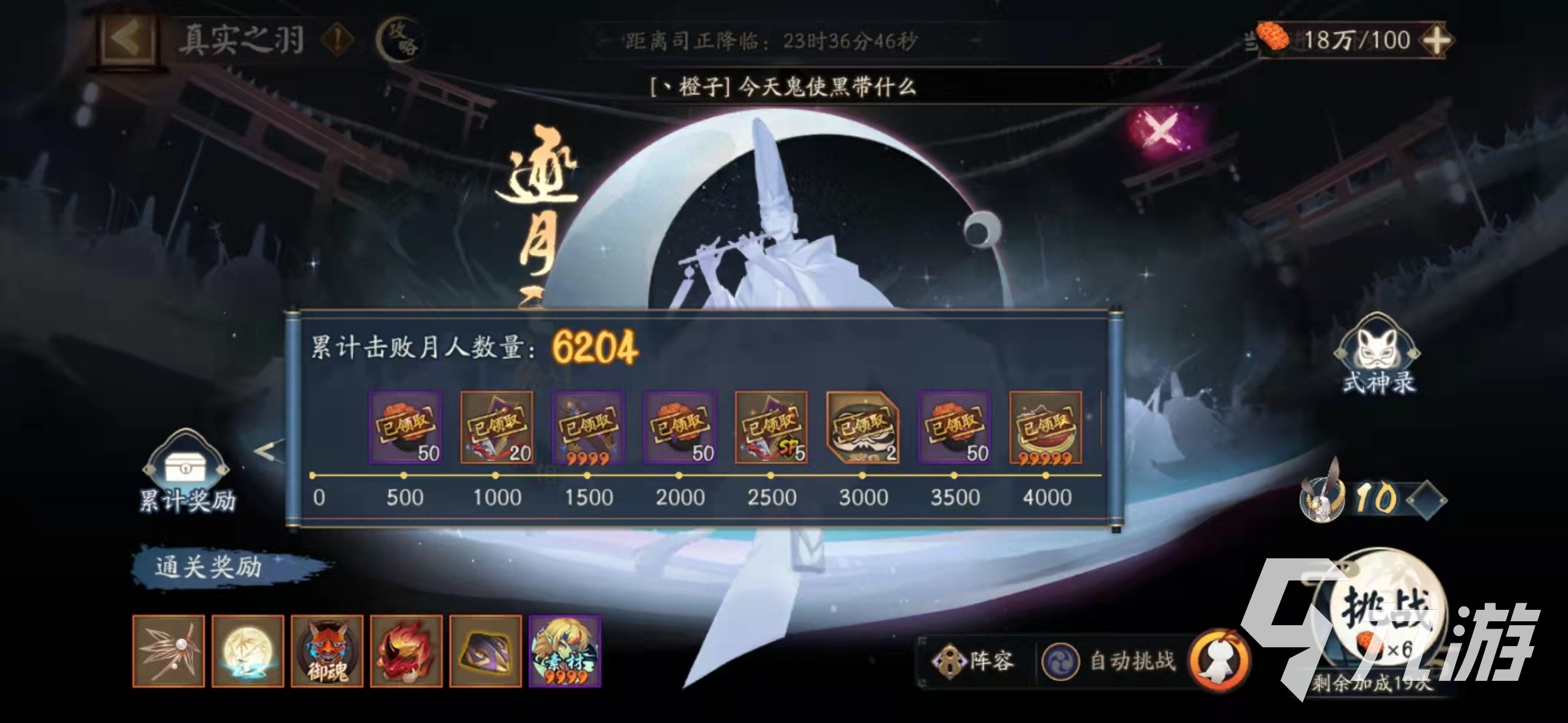 擊殺6000數(shù)量的月人即可獲得所有的獎(jiǎng)勵(lì),每日50次機(jī)會(huì),對玩家來講是完全足夠的,刷滿每日20次加成即可。
