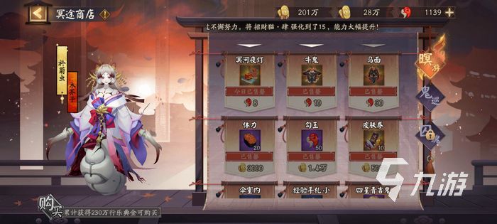 暝游的商店獎勵主要是一些養(yǎng)成材料以及這次活動當(dāng)中門票們物品,其中建議大家勾玉較多的話可以買15個馬面提升在活動副本的輸出,保證可以一波流玩法直接帶走敵人。這次的活動由于可以開啟五倍獎勵,所以每天的冥河夜燈最好也是全部買完。
