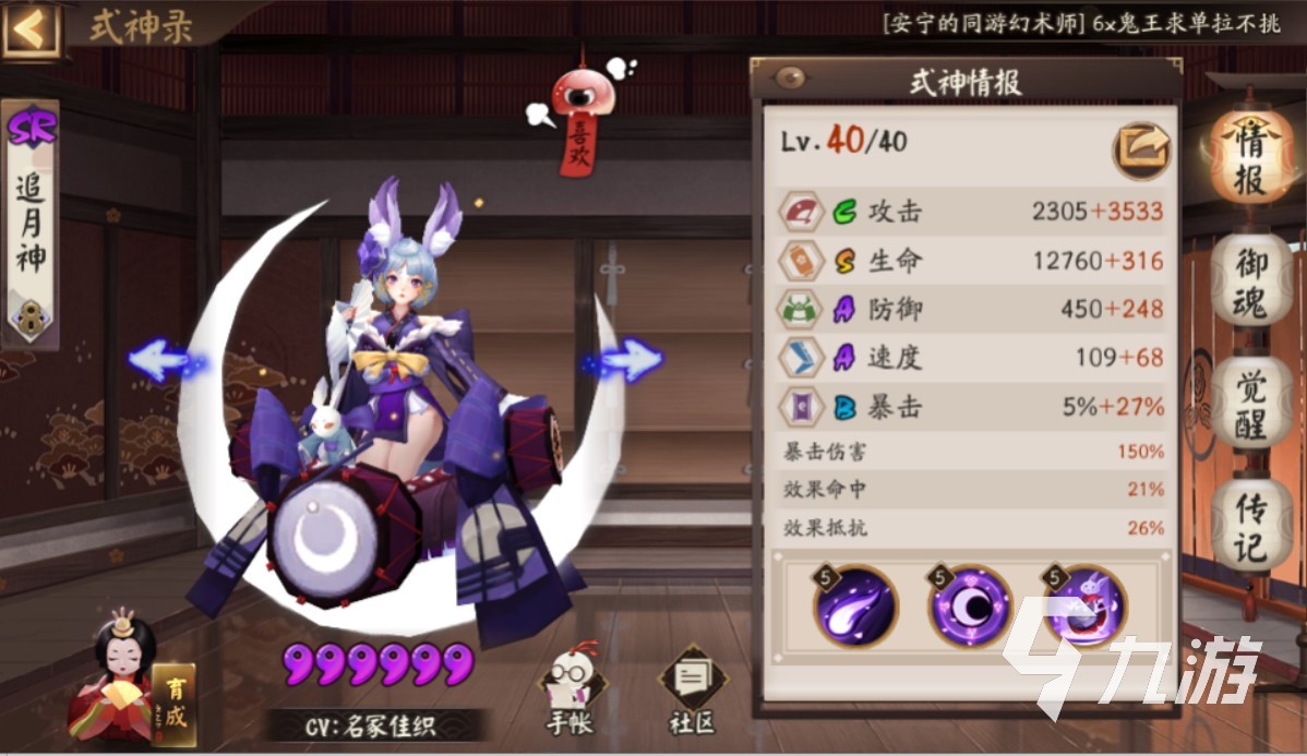 通常陣容的千姬換成追月神,雖然少了個BUFF但是能夠解決扣火還是很重要的,特攻式神沒有的玩家可以用兩面佛,佛爺過了這么多個版本依然活躍在第一線。SP花鳥卷和帝釋天屬性上全堆攻擊就行,雪幽魂清姬根據(jù)輸出式神決定封魔2件套御魂,一般群體多段的輸出帶歌姬,清姬就帶土蜘蛛。