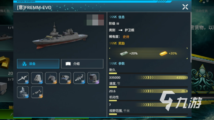 EVO可以通過(guò)轉(zhuǎn)盤保底獎(jiǎng)勵(lì)獲取,從火力配置來(lái)看,F(xiàn)REMM-EVO擁有2座自由主炮、4座鎖定火箭炮與2座35mm高平兩用機(jī)炮,其總體輸出能力堪比普通巡洋艦。這樣的火力配置讓EVO在護(hù)衛(wèi)艦?zāi)酥硫?qū)逐對(duì)位中具備壓倒性優(yōu)勢(shì),快速輸出加一定的持續(xù)作戰(zhàn)能力,尤其是對(duì)抗機(jī)動(dòng)性差的目標(biāo)時(shí)效果更加顯著。