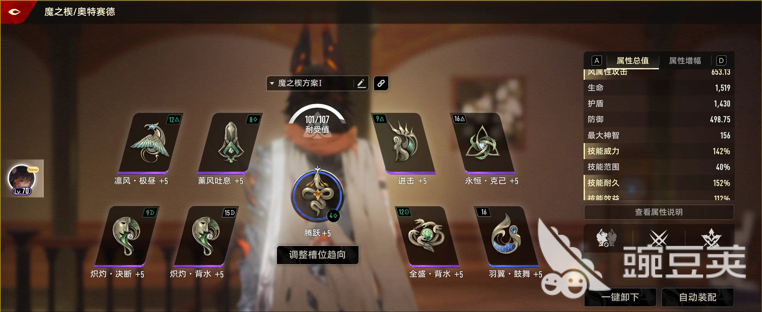 魔之楔搭配要緊扣奧特賽德爆發(fā)和破甲的核心。如下圖,可以選”凜風(fēng)·極晝“、”蕭風(fēng)吐息“、”永恒·克己“、”全盛·背水“、”熾灼·決斷“,這些都很適配角色的技能。不過在在資源有限時,大家可以優(yōu)先拉滿核心魔之楔的技能威力屬性,后續(xù)再補耐久性這些,這樣既能保證秒傷,又有一定生存容錯。