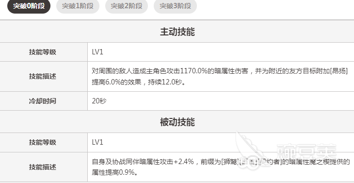 被動(dòng)技能對(duì)于暗系隊(duì)伍來說也是一個(gè)隱藏的福利??梢越o協(xié)戰(zhàn)的同伴還有自己提升2.4%的暗屬性攻擊,并且針對(duì)特定的魔之楔還有額外的加成,只要前綴為契約者或者獅鷲的暗屬性,全部都可以提升0.9%的屬性。這就意味著一旦在組建成暗系陣容之后,只要合理的搭配,就可以讓隊(duì)伍的屬性形成一個(gè)疊加的優(yōu)勢。無論是純暗隊(duì)還是混編暗系陣容,這都是一個(gè)核心的輔助并且兼具輸出。