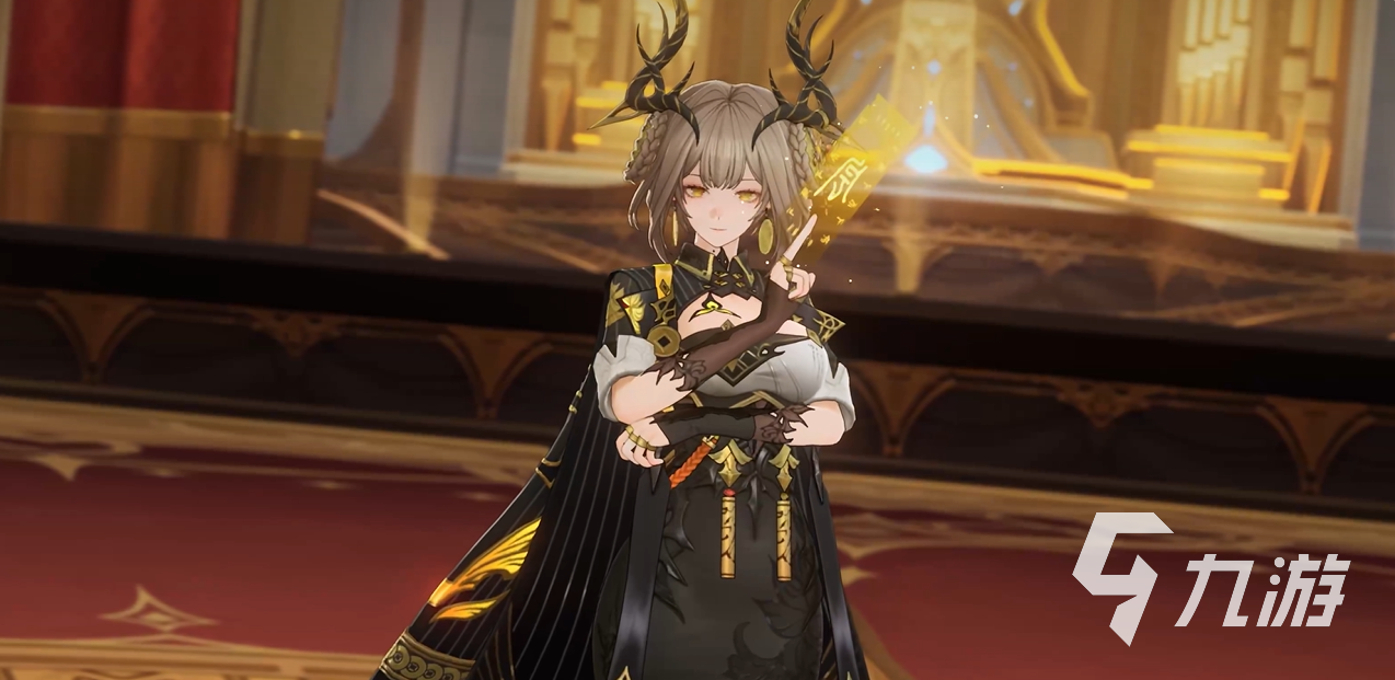 從她的外表來看,這可能是一個(gè)仙人角色。因?yàn)樗^頂長著兩個(gè)鹿角,所以可能是由鹿仙所演化出來的人形態(tài)。從她的服飾來看的話,采用了金色的鎏金元素以及色調(diào)搭配上嚴(yán)肅以及神秘感十足的黑色,更能顯現(xiàn)出她的大家風(fēng)范。