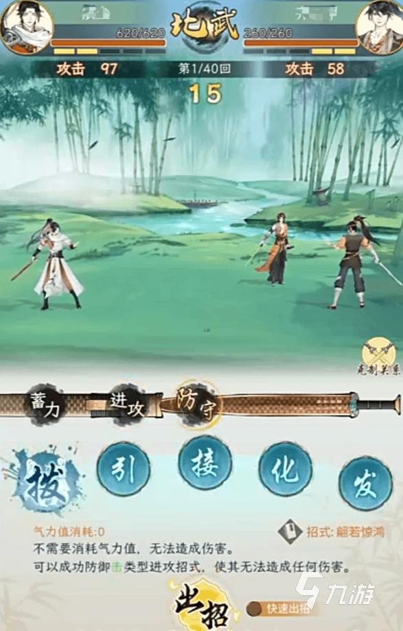 目前拔防擊、引防刺、接防斬、化防劈、發(fā)防絕,大家具體在實(shí)戰(zhàn)中選擇哪一個(gè),可以根據(jù)依靠看血條下面的蓄力值來進(jìn)行猜測(cè),一般情況下為了打出更高的輸出,都會(huì)去選擇自身能量能承受的最靠后的招式。