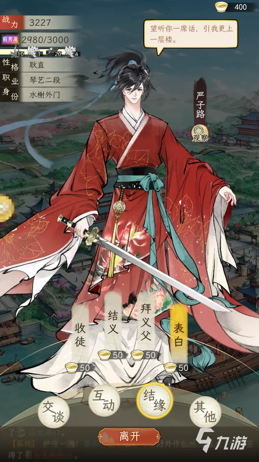 拜師成功后,就不能和該npc結(jié)婚了,所以在決定拜師之前,要考慮清楚自己的游戲規(guī)劃。另外,好感度會(huì)隨著時(shí)間慢慢降低,如果不經(jīng)常送禮維持,就有可能脫師,內(nèi)功成長就會(huì)停滯。建議大家準(zhǔn)備足夠的禮物,定期送給師傅,保持好感度穩(wěn)定。沒禮物了,可以多參加副本和活動(dòng),積累禮物。