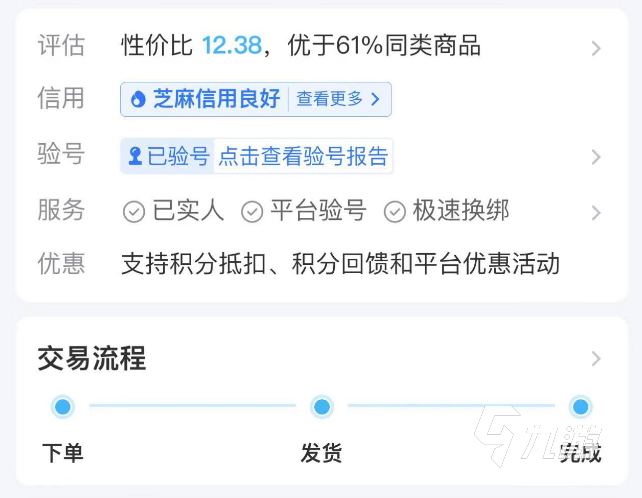 交易貓的估號(hào)和產(chǎn)品性價(jià)比呈現(xiàn)的功能,方便于小伙伴們直接通過(guò)平臺(tái)詳情頁(yè),評(píng)估游戲號(hào)的性價(jià)比,了解賬號(hào)的價(jià)值,像是賬號(hào)的芝麻信用分高低、查看驗(yàn)號(hào)報(bào)告和了解此號(hào)的真實(shí)情況等,都清晰的展示出來(lái),優(yōu)惠方面也支持積分兌換回饋活動(dòng),整個(gè)跟換綁定賬戶的過(guò)程也是全權(quán)由客服完成,真正保護(hù)了用戶們的利益,這也是其他小平臺(tái)比不上的點(diǎn)。