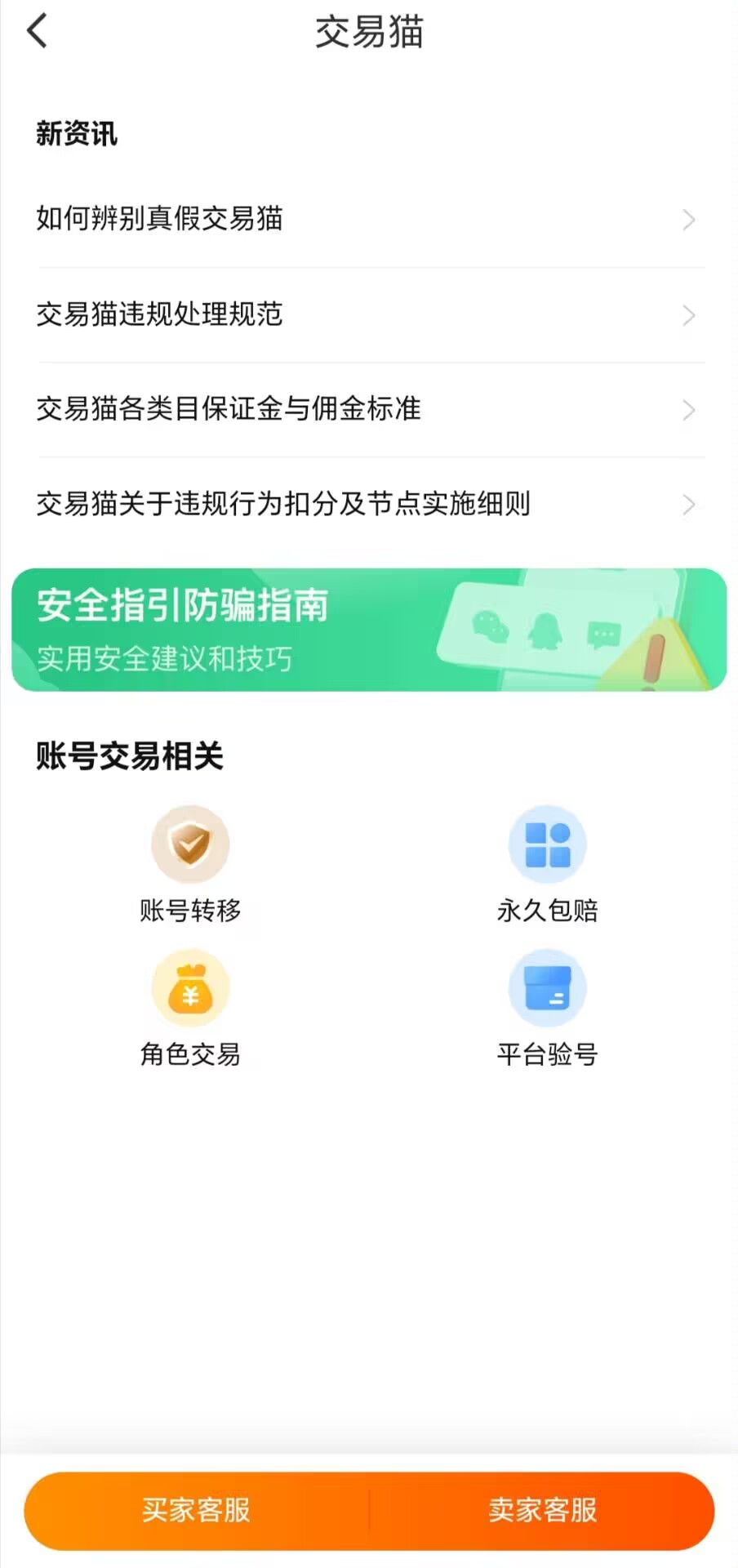 而且交易貓還提供了完善的售后保障機制,該平臺提供24小時在線的客服。如果大家在游戲賬號交易的過程中遇見任何的問題,都可以向客服進行提問。這樣就能夠及時的處理大家在使用的過程中遇到任何的問題,都會給大家提供有效的解決方案。并且大家在交易的過程中出現(xiàn)任何的問題,或者對于該平臺的某個機制不滿意的話,也可以向該平臺提出意見和反饋,這樣也可以幫助交易貓可以更加完善。