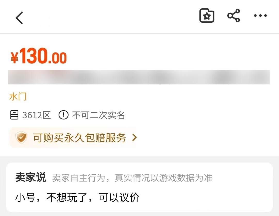 同時在買號時也可以關(guān)注下賣家的留言內(nèi)容,會有一部分玩家會在留言版面說明這個賬號的一些信息,也有可能如圖顯示的【可以議價】。游戲賬號的價值每個人的判定標(biāo)準(zhǔn)不一樣,所以在購買游戲賬號時可以嘗試一下議價,在交易貓商品的詳情頁面可以進行議價。想要買號的玩家可以嘗試通過這個功能來和賣家商量是否能降價。如果賣家同意降價的話那么需要在24小時內(nèi)完成交易,否則這次議價無效。