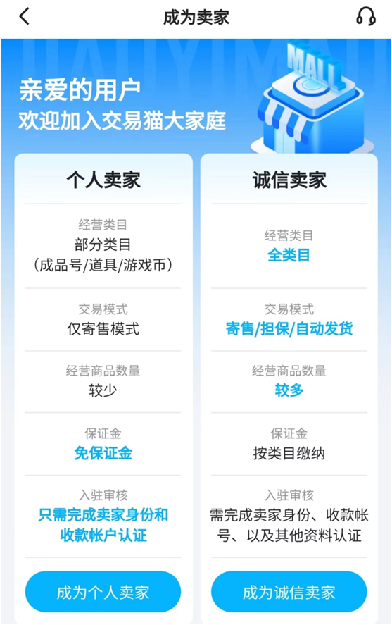 大家在賣號(hào)的時(shí)候,可能會(huì)擔(dān)心自己的賬號(hào)價(jià)值不是很高,能不能順利成為賣家,在交易貓你完全不用擔(dān)心這個(gè)問題,只要通過實(shí)名認(rèn)證并且上傳你擁有的游戲帳號(hào)的信息,那么不論賬號(hào)價(jià)值高或者低,你都能順利成為一名賣家來出售自己的游戲帳號(hào)。