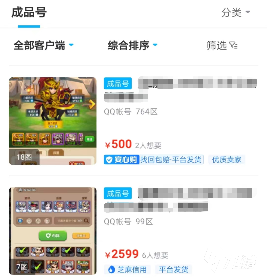 登錄平臺(tái)以后大家搜索胡萊三國,就能進(jìn)入游戲交易專區(qū),先選定客戶端和服務(wù)器,就能看到對應(yīng)服務(wù)器的賬號了。這些成品的賬號性價(jià)比特別高,本身賬號的價(jià)格就很實(shí)在,還跟平臺(tái)的優(yōu)惠活動(dòng)同享。如果買家擁有優(yōu)惠券或者是積分的話,下單的實(shí)付價(jià)格也就更低了。