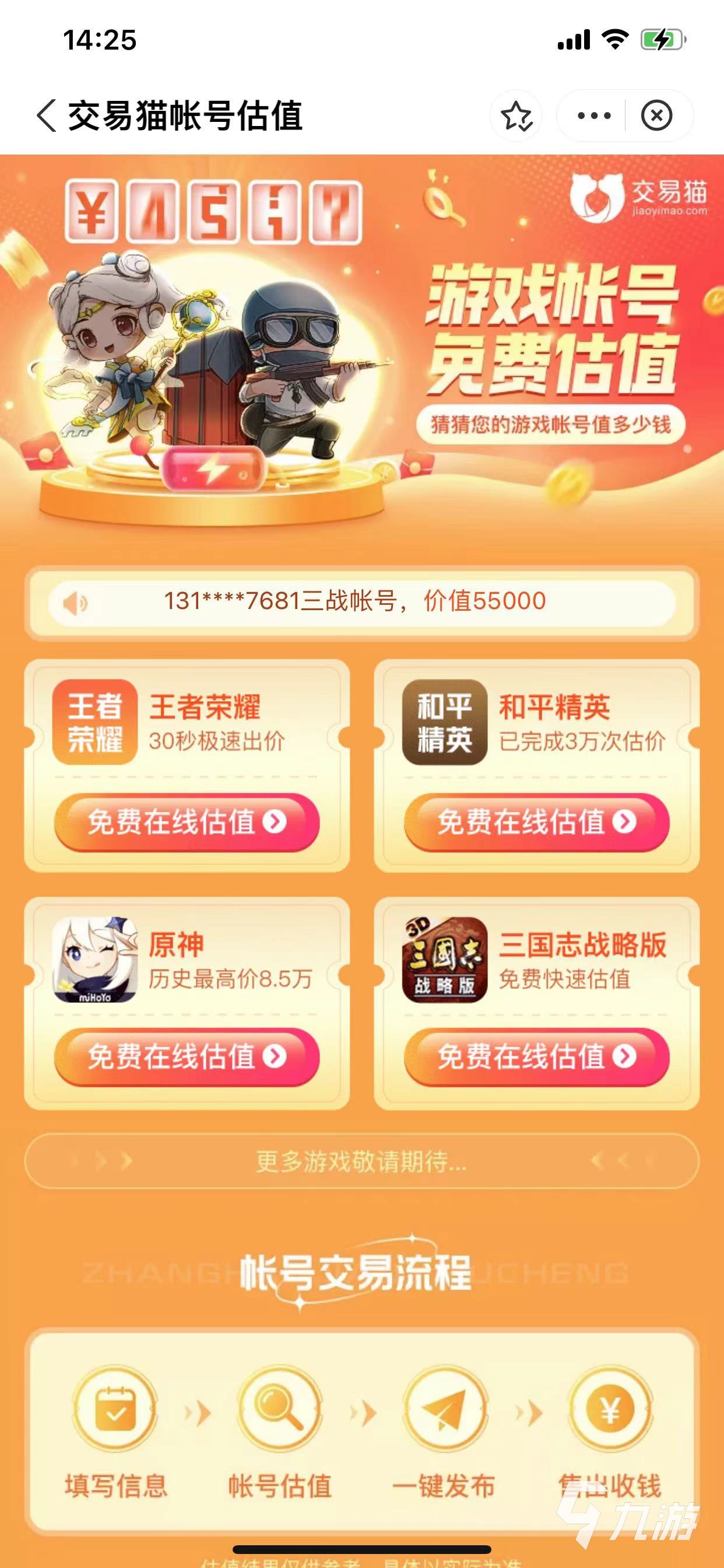 以上就是小編對于王者v6賬號賣多少合適這個問題的具體解答了,想要出售游戲賬號的小伙伴們不妨下載交易貓官方APP或支付寶搜索交易貓小程序試用看看,多種類型的賬號均可出售哦!