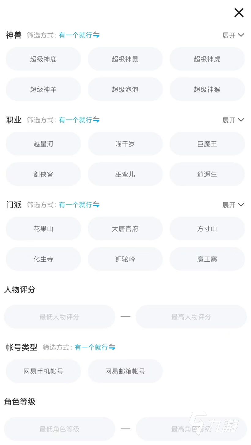 想要專門去買69級的賬號,大家肯定是對游戲內(nèi)的各種職業(yè)門派以及人物培養(yǎng)有一定自己的見解,想要更加準確的定位到賬號的話,建議大家可以使用夢幻游戲?qū)^(qū)內(nèi)的篩選欄,可以直接在這里篩選出像花果山,方寸山等門派,又或者是逍遙生,劍俠客等一系列職業(yè),最重要的是可以在角色等級內(nèi)輸入大家想要的69級。