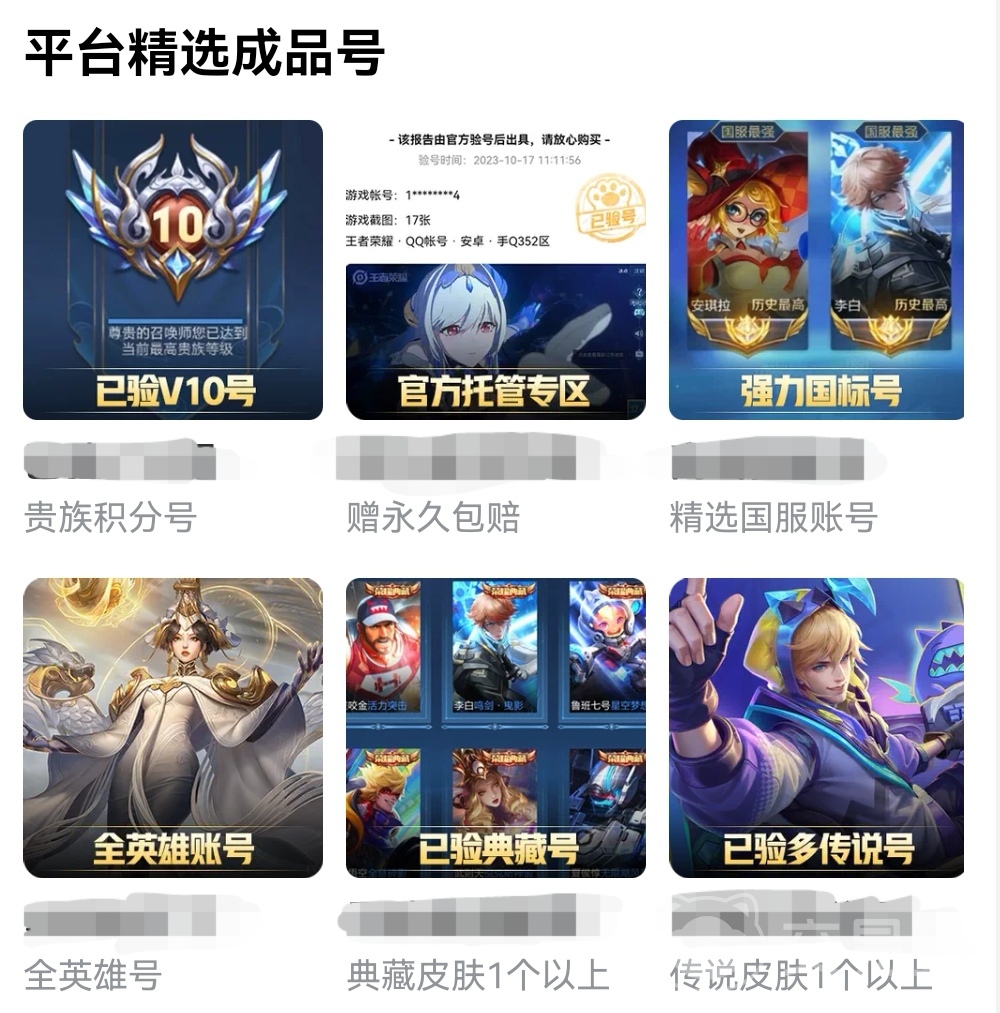 種類豐富。平臺(tái)當(dāng)中有著非常多的游戲類型,尤其王者榮耀已經(jīng)算是當(dāng)下市場(chǎng)上比較熱門的一個(gè)游戲了,所以想要購(gòu)買到王者榮耀賬號(hào)對(duì)于交易貓平臺(tái)真是小菜一碟,通過篩選功能以及各種操作來快速找到你想要的游戲賬號(hào),多種賬號(hào)類型數(shù)量數(shù)不勝數(shù),包括了自抽號(hào)、成品號(hào)、高級(jí)賬號(hào)和滿級(jí)賬號(hào)等,為大家提供更多資源的同時(shí)還把價(jià)格降到了最低。