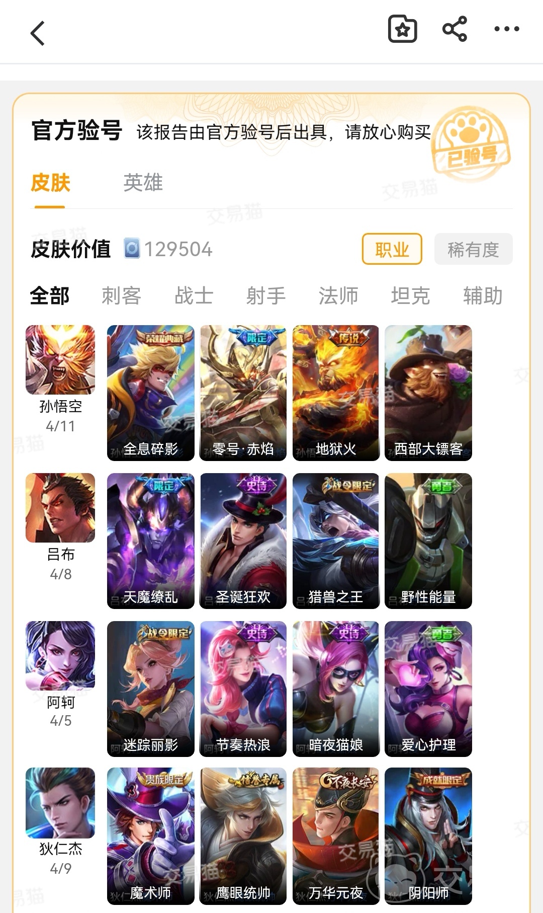 信息全面。大家可以看到王者榮耀專區(qū)當(dāng)中的商品鏈接詳細(xì)信息都非常全面,這樣能讓你全維度的了解這個(gè)賬號(hào),還有部分游戲截圖讓大家看看里面的人物皮膚和道具等,這樣更能選中自己想要的賬號(hào),而且平臺(tái)給賬號(hào)提供的驗(yàn)號(hào)報(bào)告你也可以在詳細(xì)內(nèi)容當(dāng)中查看。