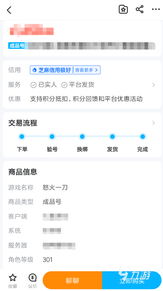 3、當(dāng)大家找到滿意的商品后,就可以進(jìn)入到詳情頁面當(dāng)中,這里可以了解到購買游戲賬號所需要完成的流程步驟。同時如果對價格不太滿意的話,還可以通過議價來和賣家進(jìn)行溝通。隨后,大家點擊立即購買即可開始交易。