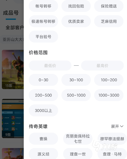 小編推薦以專區(qū)估價的方式來對萬國覺醒賬號進行估價,操作方法也很簡單,如果是成品號的話就直接到專區(qū)內(nèi)進行篩選,篩選內(nèi)容就包括傳奇英雄的數(shù)量和戰(zhàn)斗力范圍,將自己賬號的數(shù)值給填寫進去,隨后出現(xiàn)的賬號就是和自己差不多的了,再看看他們賣多少錢就可以了。