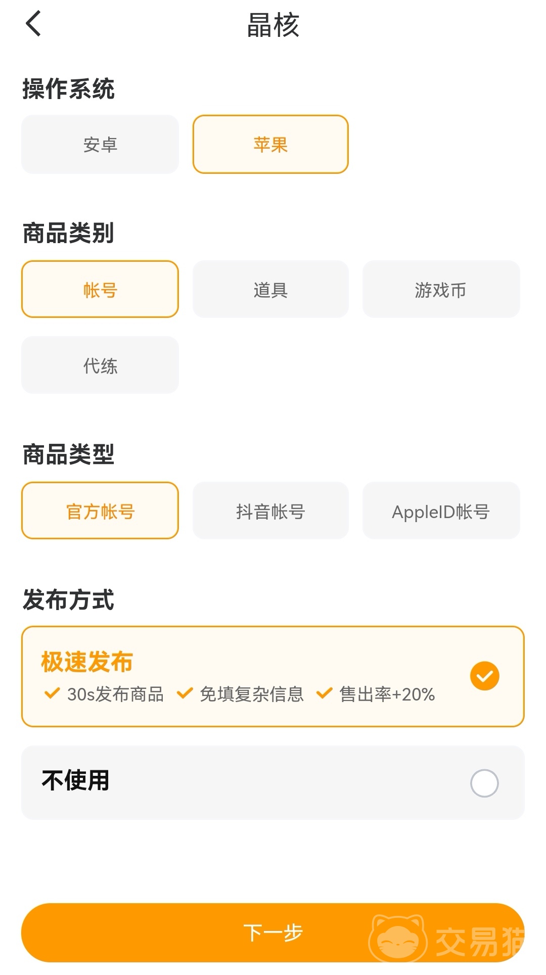 在下載交易貓登錄之后完成個(gè)人信息的認(rèn)證與審核,就直接點(diǎn)擊主頁下方的賣賬號(hào),接著要找到晶核游戲?qū)^(qū),上傳一些基礎(chǔ)賬號(hào)信息,如實(shí)填寫平臺(tái)的問題,整個(gè)上架流程操作簡(jiǎn)單,哪怕你之前沒有任何的賬號(hào)交易經(jīng)驗(yàn)也可以,交易貓平臺(tái)沒有太多花里胡哨的出售步驟,所以很多人都會(huì)選擇使用交易貓出售賬號(hào),而且每個(gè)基本信息都是獨(dú)立呈現(xiàn)的,不需要大家用一大段文字介紹你的游戲信息。
