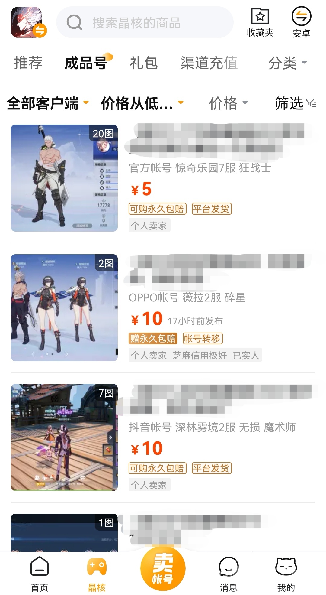 來源: 極光 作者: 二蛋 2024年01月24日 10:58根據(jù)現(xiàn)在這個(gè)時(shí)代來說,很多游戲的推出速度和落伍速度都是比較快的,有一些可能還沒來得及嘗試就要面臨更迭了,于是大家不得不出售賬號(hào),下面內(nèi)容要講晶核賣號(hào)平臺(tái)哪個(gè)好,晶核這種游戲比較注重的是養(yǎng)成,因?yàn)楦鞣N原因,不少小伙伴在棄坑的時(shí)候會(huì)想到出售游戲賬號(hào),這樣不僅能夠從中賺取一些收益也能夠?yàn)樽约旱馁~號(hào)找到新的主人,所以小編今天為大家?guī)淼氖且粋€(gè)比較靠譜且實(shí)用的賬號(hào)交易平臺(tái)。