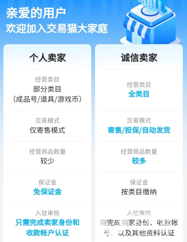 然后是針對想要出售賬號的這類玩家,為了嚴(yán)格要求各位,讓大家體驗更專業(yè)的賣號服務(wù),每一個人都需要去開通一個賣家身份,有了此身份的加持之后,各位才可以順利在平臺當(dāng)中發(fā)布商品。對比其他不專業(yè)的交易平臺,根本不會審核商品和賣家身份的真實性,也會提高交易風(fēng)險。