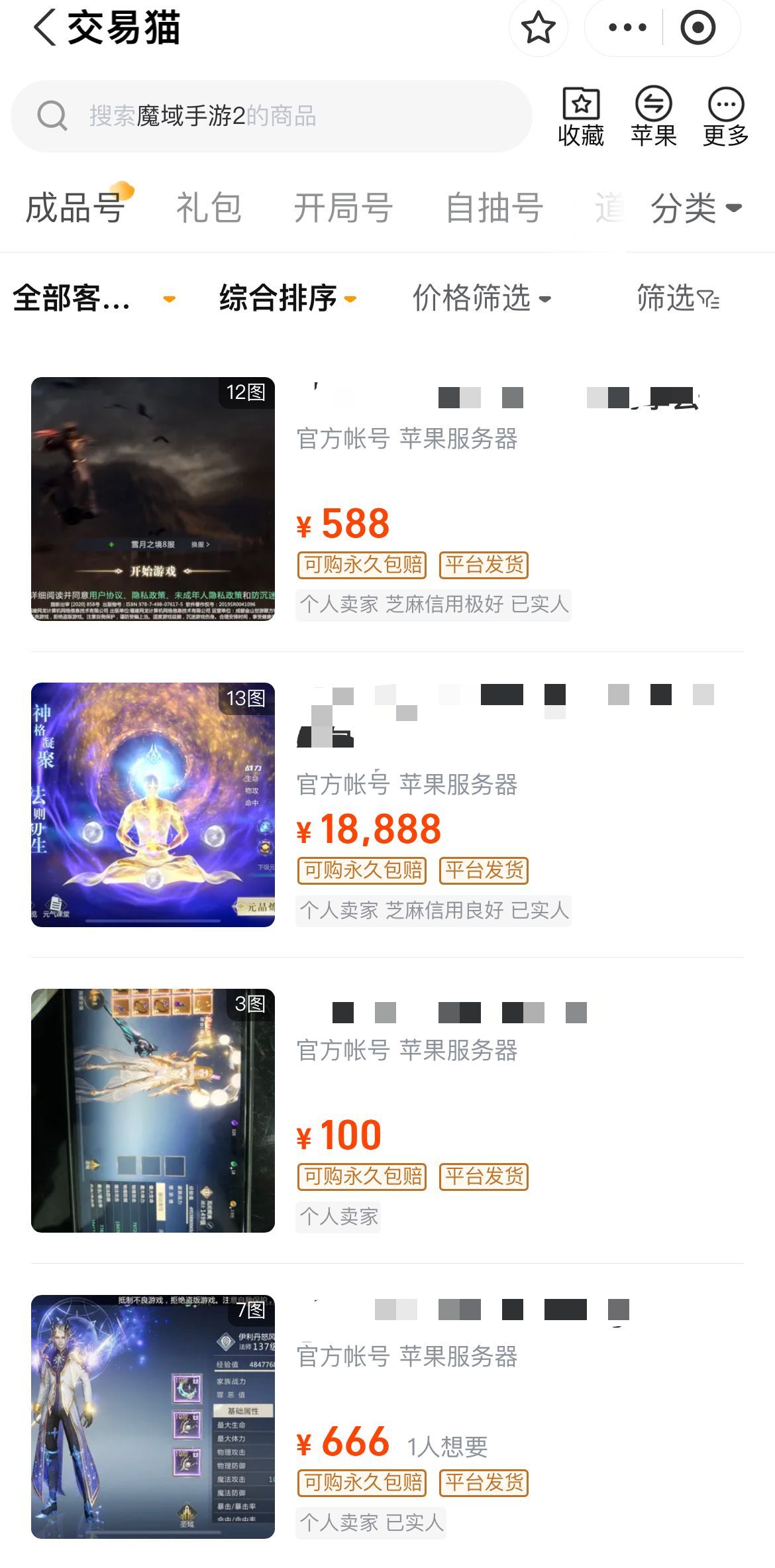 確實(shí)對于新手玩家來說前期的練號(hào)消耗時(shí)間和精力,可以的話去交易貓選購一個(gè)適合自己的賬號(hào)確實(shí)能夠享受高戰(zhàn)力帶來的快樂,在交易貓的平臺(tái)中大家會(huì)看到很多魔域手游2游戲賬號(hào),每一款賬號(hào)所擁有的資源都是不一樣的,所以價(jià)格方面也是有很大差異的。