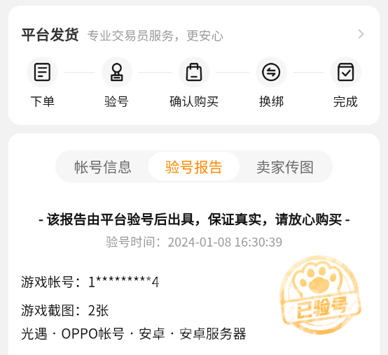 在上架商品的時候我們也可以選擇一些便利的平臺服務,都是對快速賣號有幫助的。首先就是平臺發(fā)貨,這樣買家付款之后會由交易貓官方客服直接協(xié)助進行換綁,不需要我們自己上線手動發(fā)貨,節(jié)省時間的同時也能夠減少出錯的可能。在平臺發(fā)貨的過程中會對賬號進行驗證,并且在游戲中將相關(guān)內(nèi)容截圖保存起來整合成驗號報告放置在商品的詳情頁面中。一般帶有驗號報告的商品更容易獲得買家的青睞,所以也可以快速賣號哦。